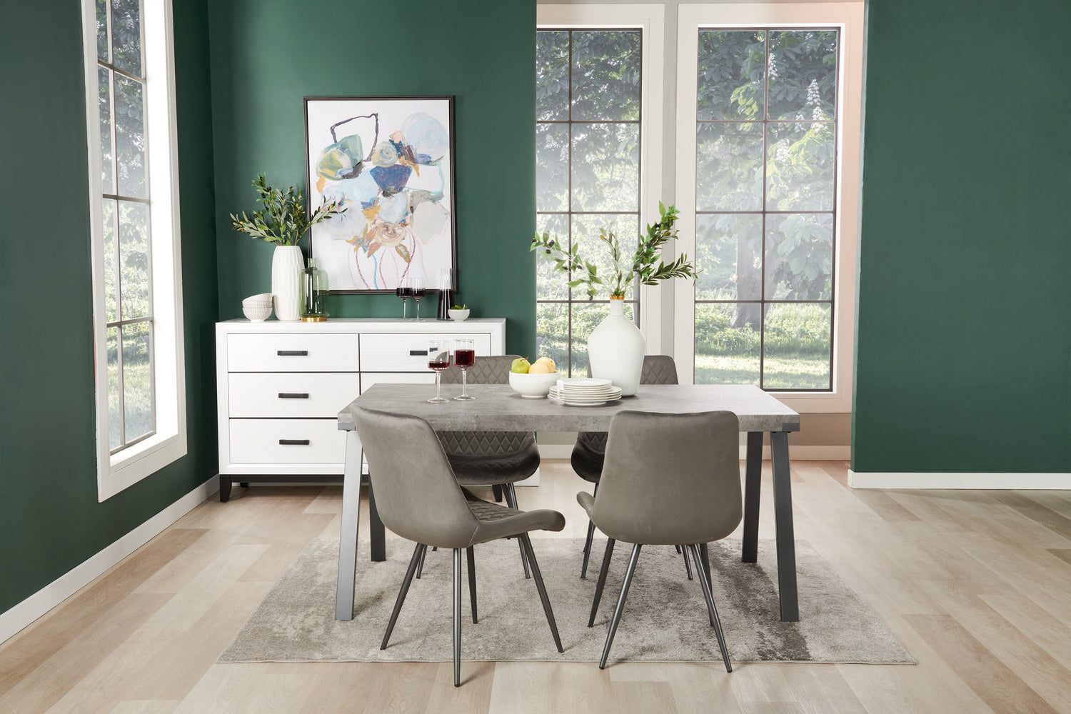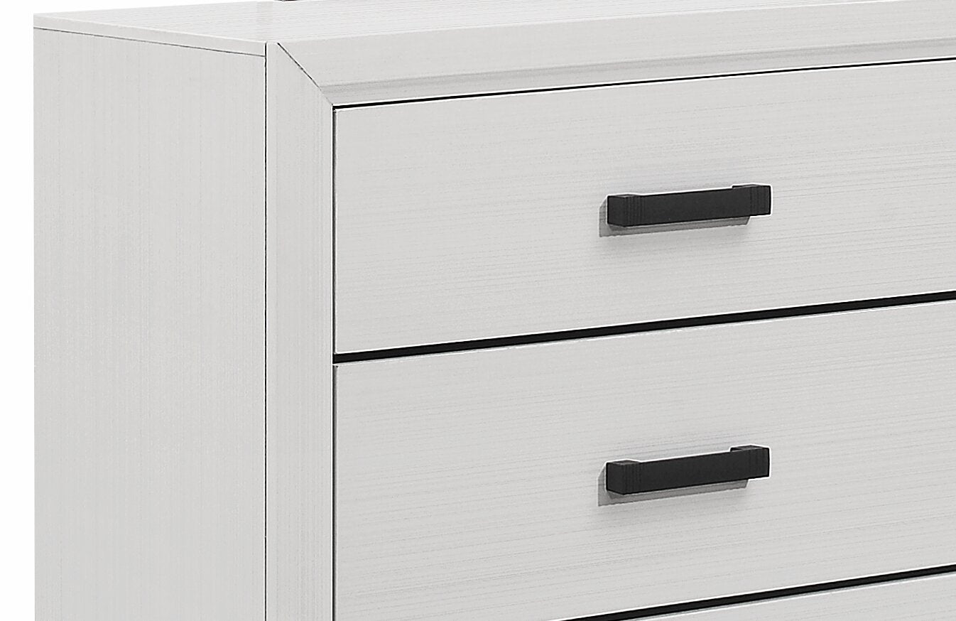 | Quincaillerie | Des poignées de tiroir noires rehaussent le style modernes. |