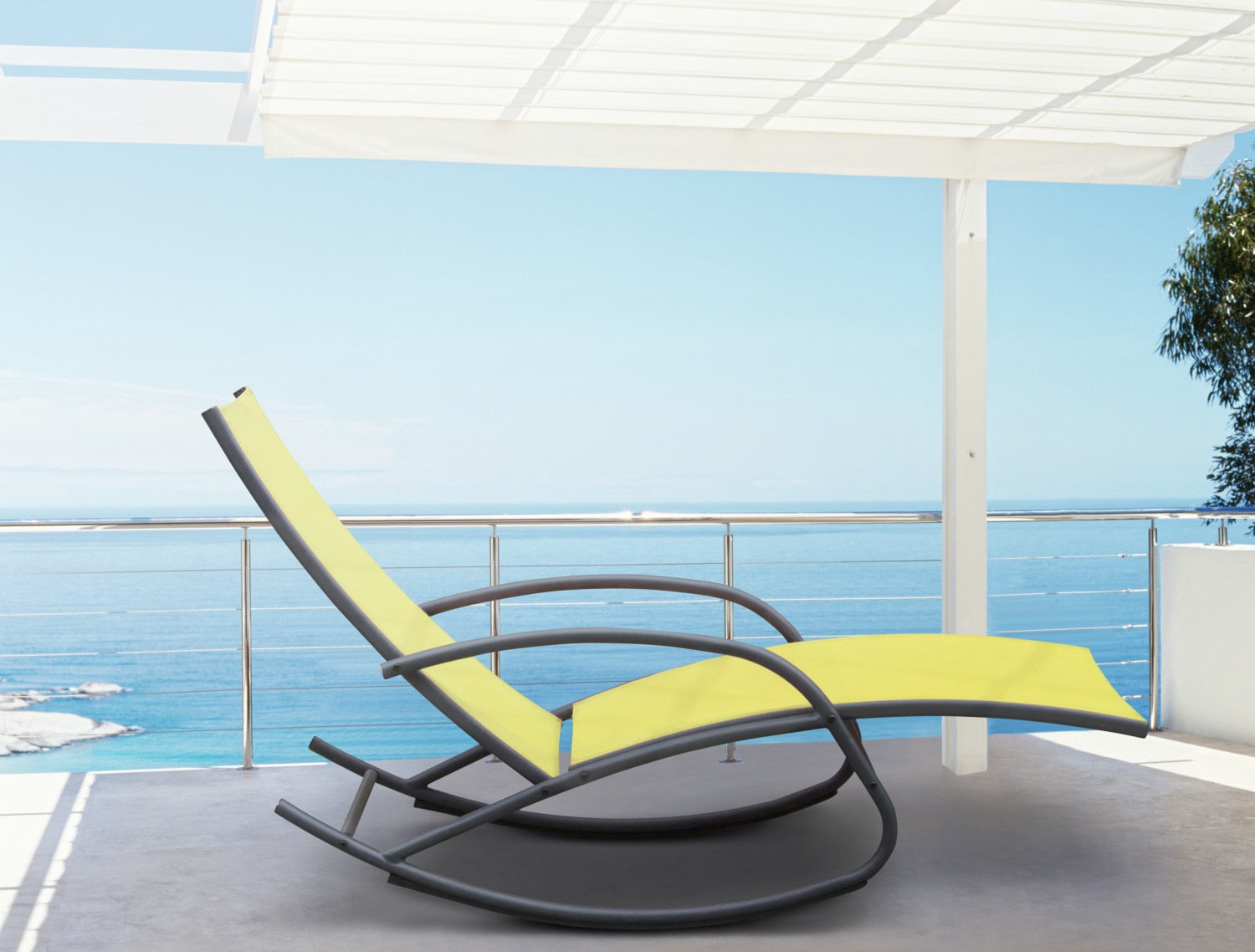 - La chaise berçante est jumelée à la chaise longue pour la terrasse créant ce mélange imaginatif de confort pour la cour arrière.