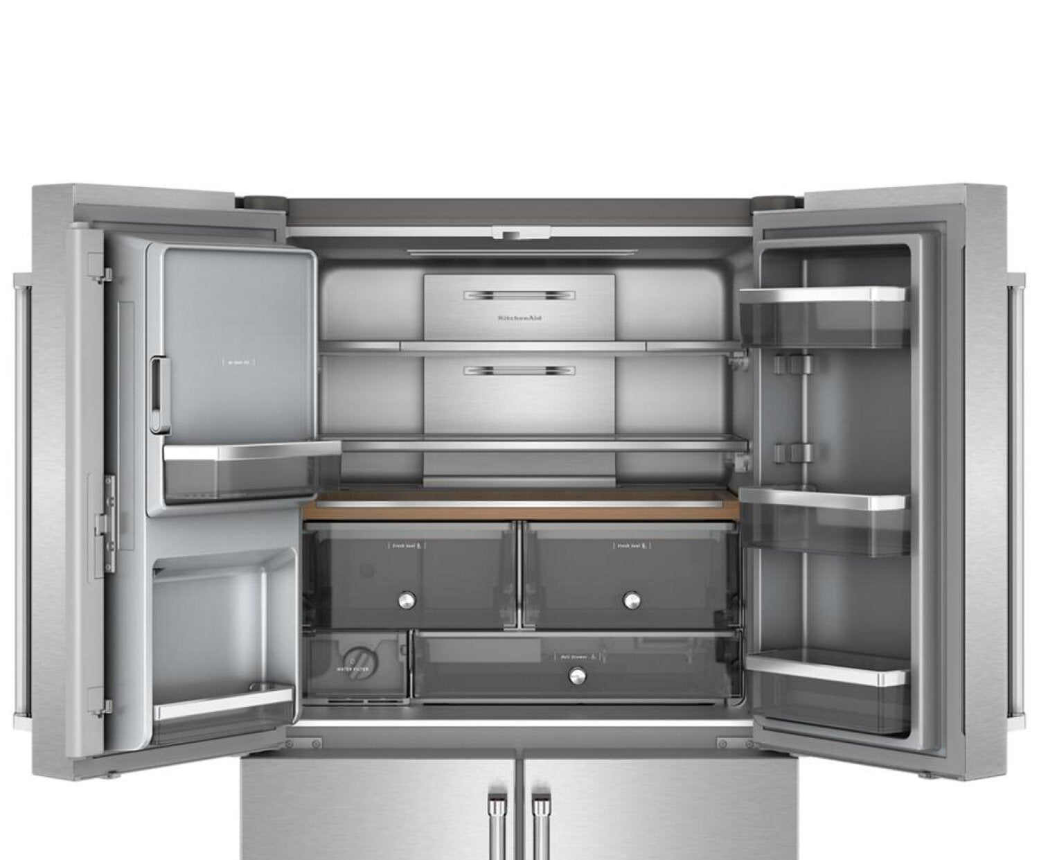 Zone de température polyvalente : Intérieur platine emblématique : Bac amovible pour les boissons : Panneau de commande tactile ACL entièrement en couleurs : Système de gestion de la température ExtendFreshMC : Distributeur d'eau et de glaçons à l'extérieur : Tablettes réglables pleine largeur en verre : Appareil homologué ENERGY STARMD : |