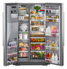 Capacité spacieuse de profondeur comptoir de 20,8 pi3 : Éclairage panoramique à DEL : Espaces personnalisables pour grands et petits articles : Système de distribution de glaçons dans la porte In-Door-IceMD avec bac amovible : Intérieur platine emblématique : Système de refroidissement PreservaMD : Distributeur d’eau et de glaçons externe avec remplissage mesuré : |