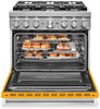 2 brûleurs à flamme double de 20 000 BTU Ultra PowerMC : Système de conversion EasyConvectMC Électroménager intelligent : Bouton de commande concentrique double : Grille coulissante à glissières SatinGlideMC : |