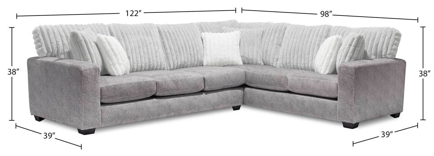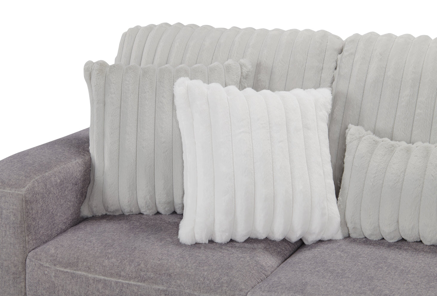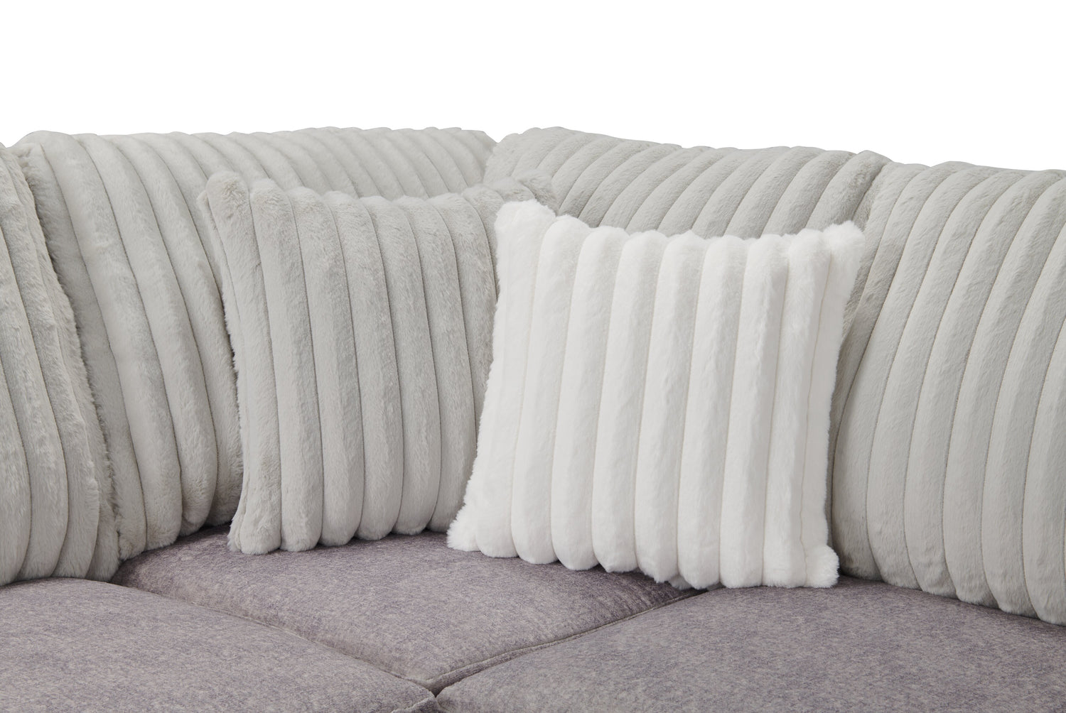 | Détails décoratifs | Le polyester gris clair à rainures enveloppe le coussin de dossier et les coussins décoratifs afin de créer une apparence unique de tissus contrastants. |