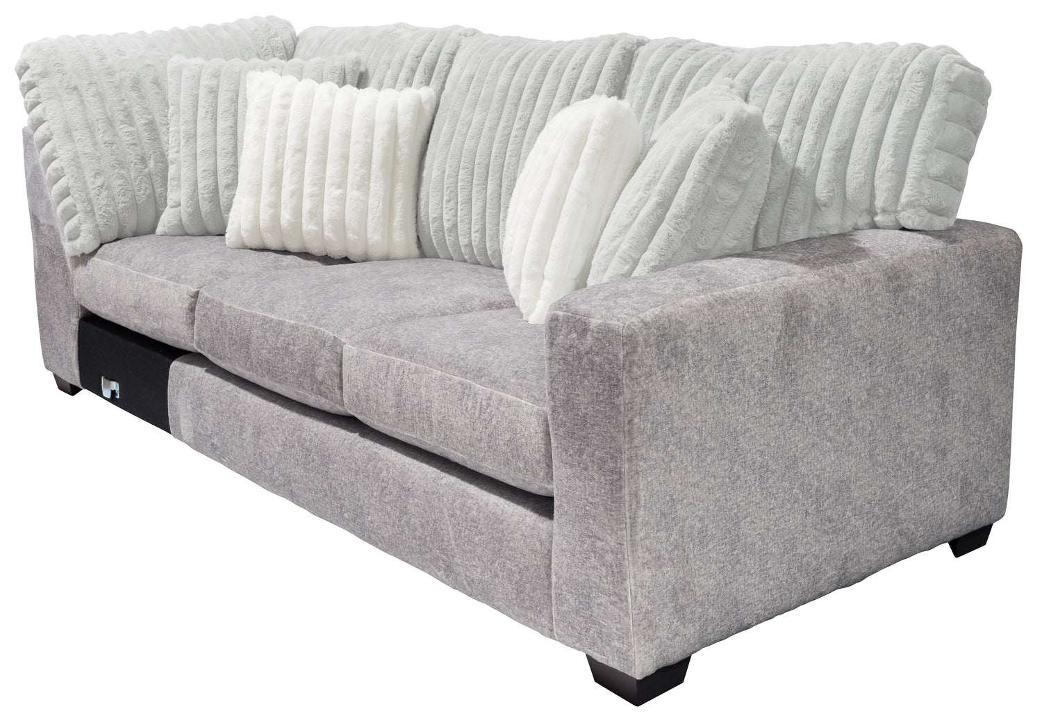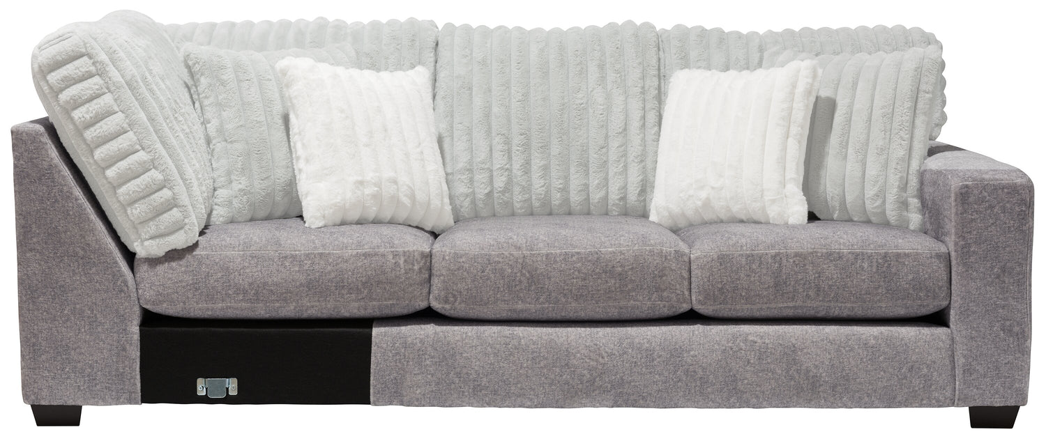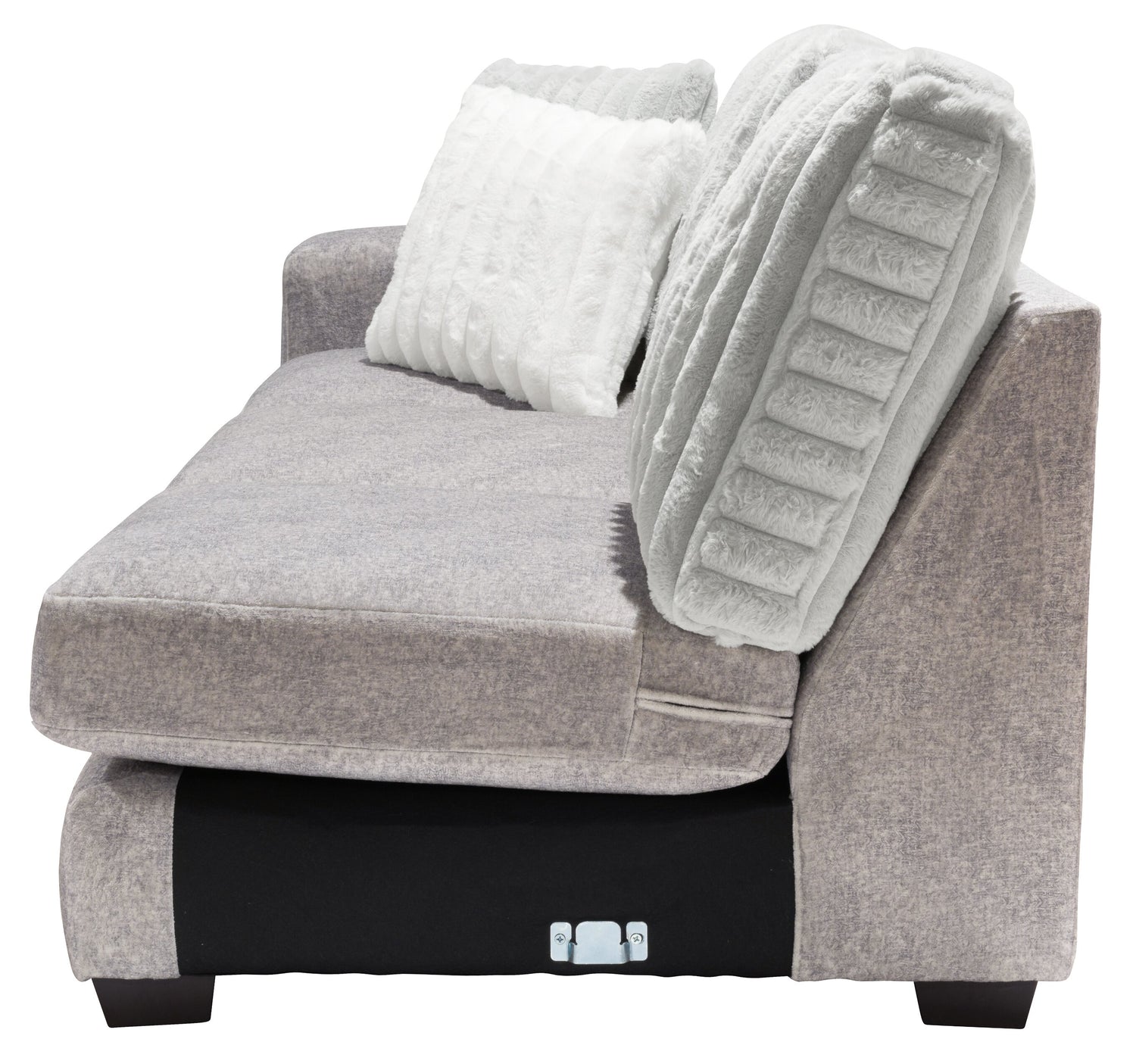 | Détails décoratifs | Le polyester gris clair à rainures enveloppe le coussin de dossier et les coussins décoratifs afin de créer une apparence unique de tissus contrastants. |