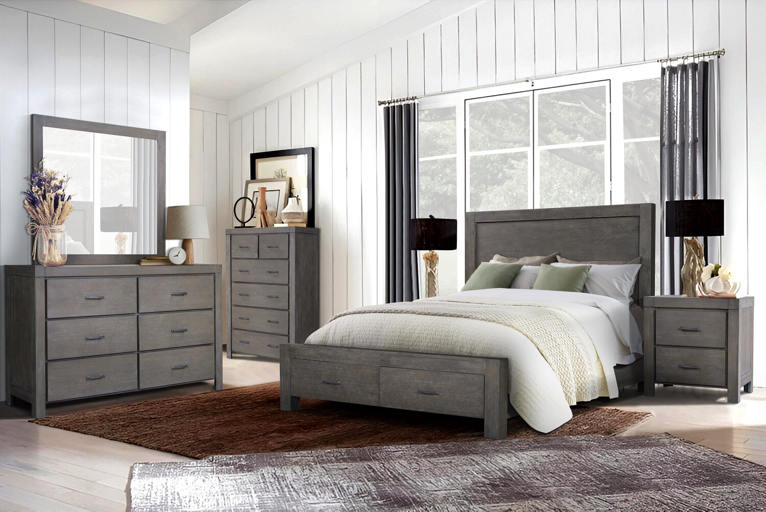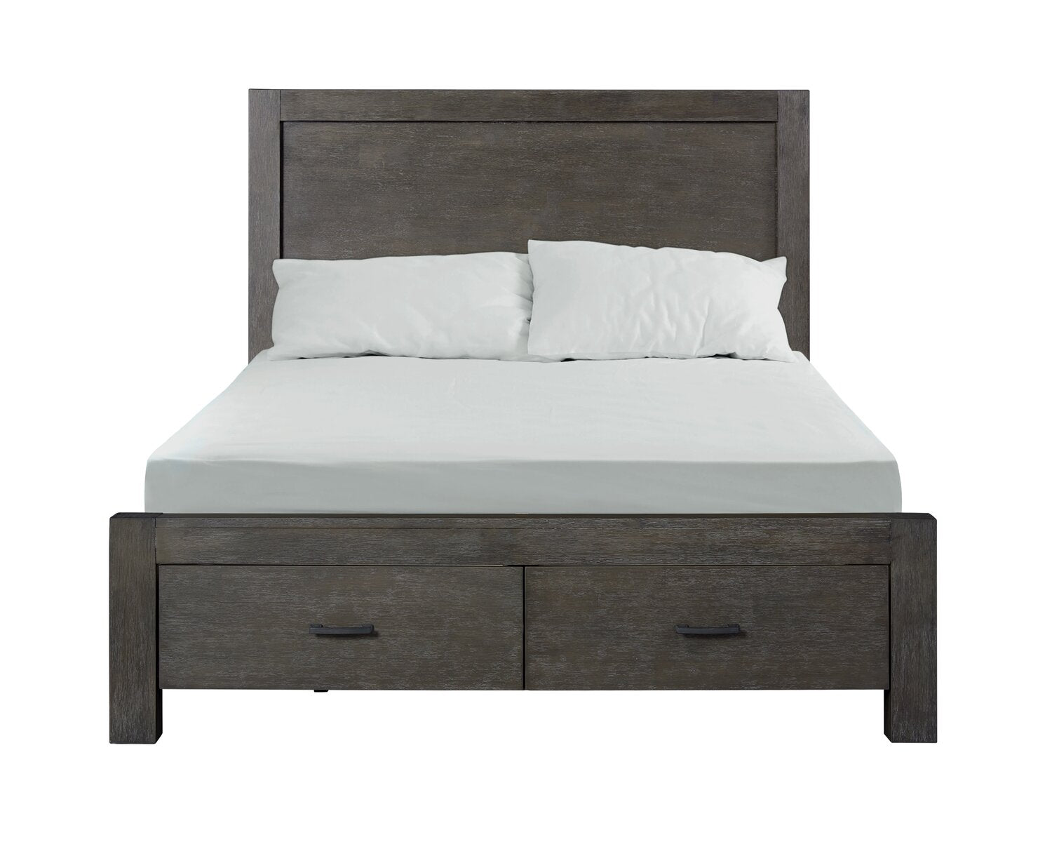 Lit plateforme de rangement Koda en bois avec tête de lit et cadre de lit, gris - format grand lit