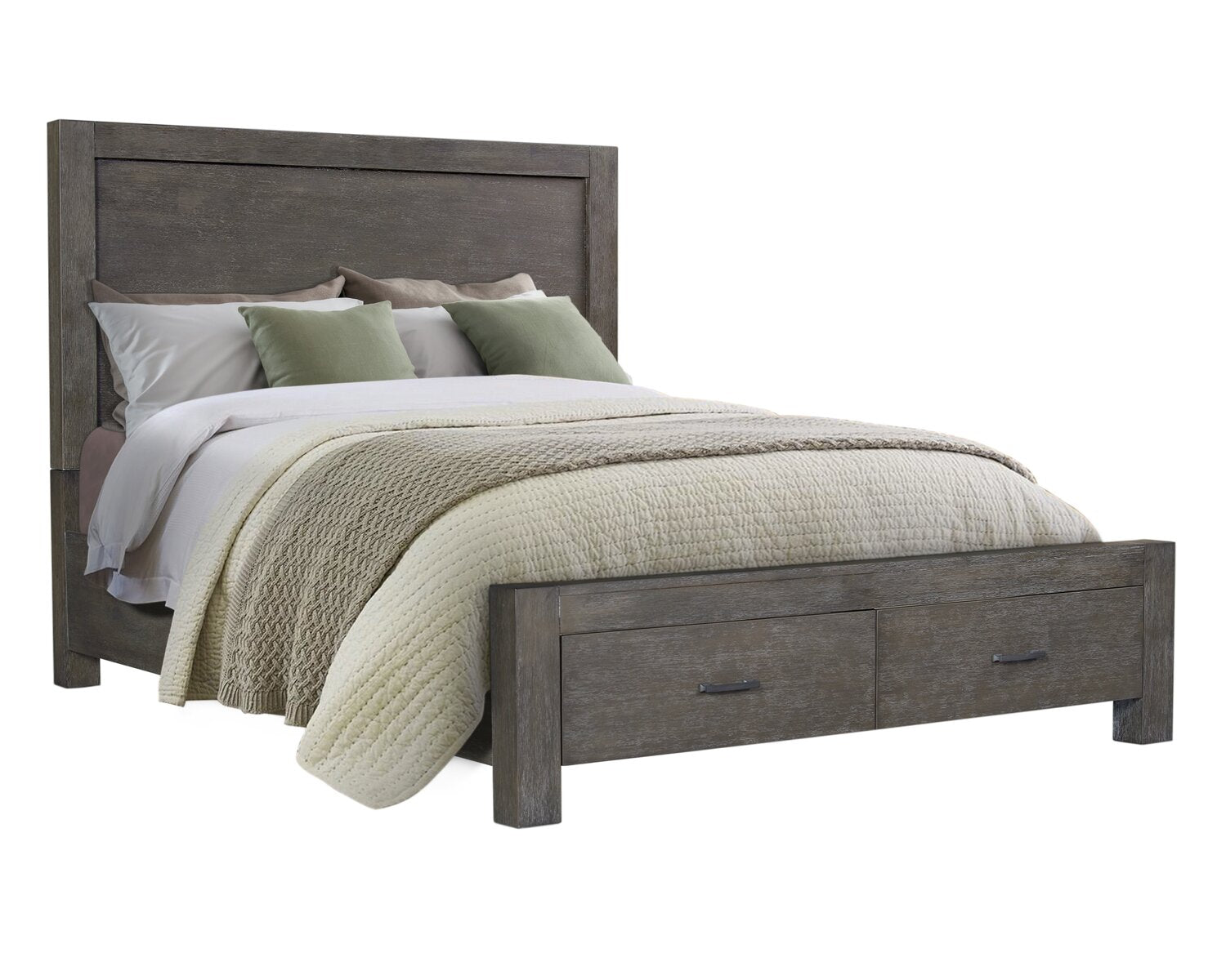 Lit plateforme de rangement Koda en bois avec tête de lit et cadre de lit, gris - format grand lit