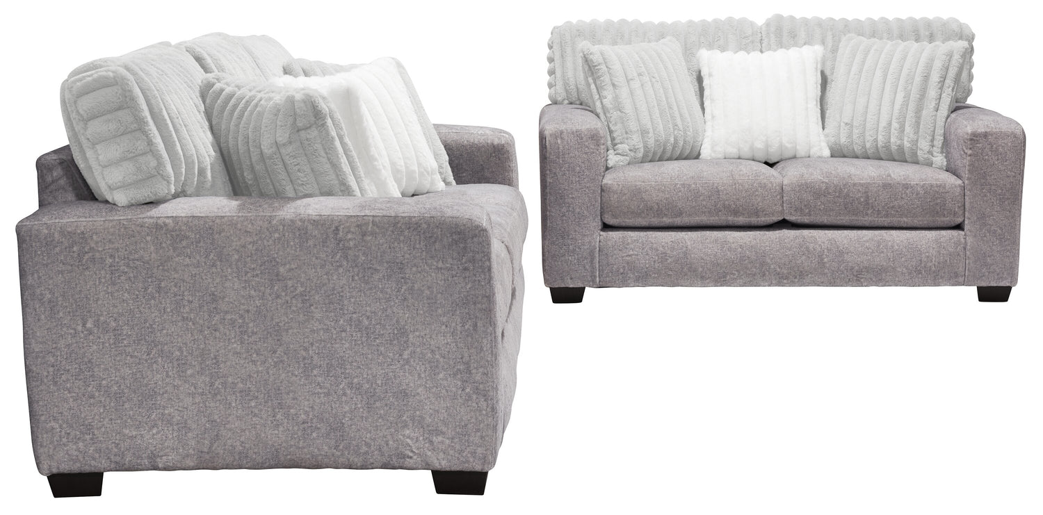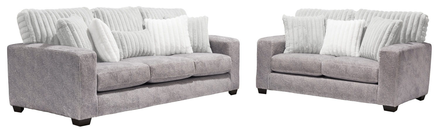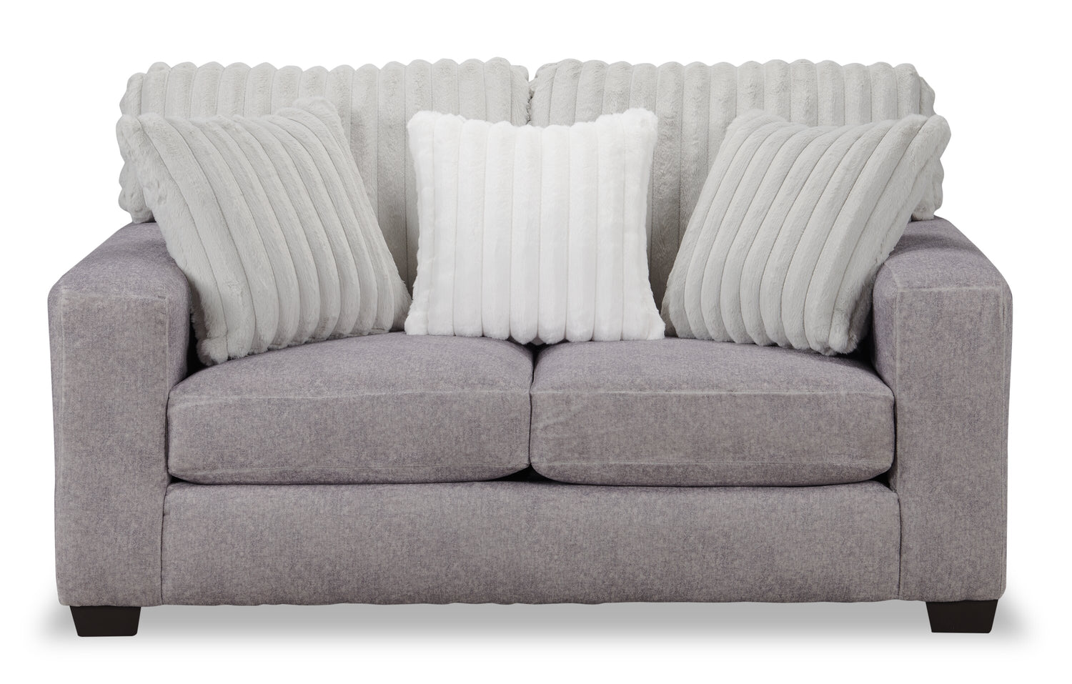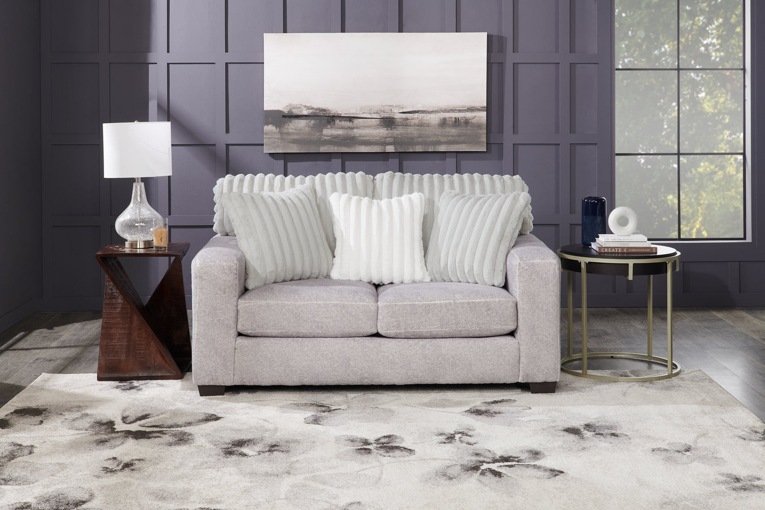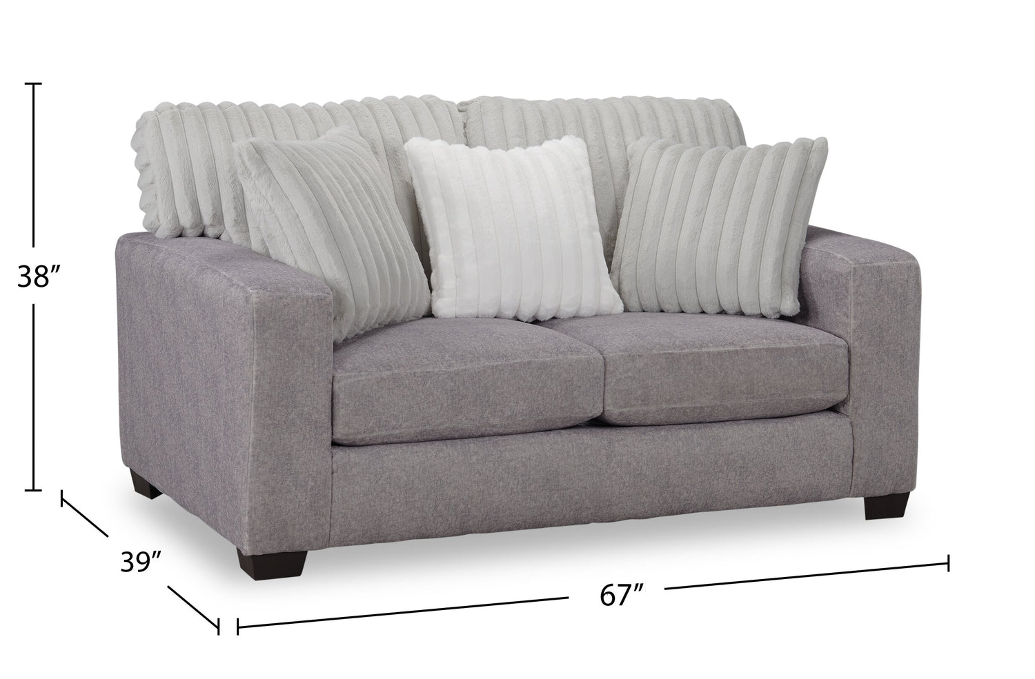 | Détails décoratifs | Le polyester gris clair à rainures enveloppe le coussin de dossier et les coussins décoratifs afin de créer une apparence unique de tissus contrastants. |
