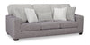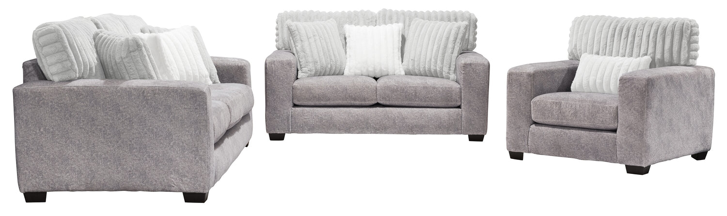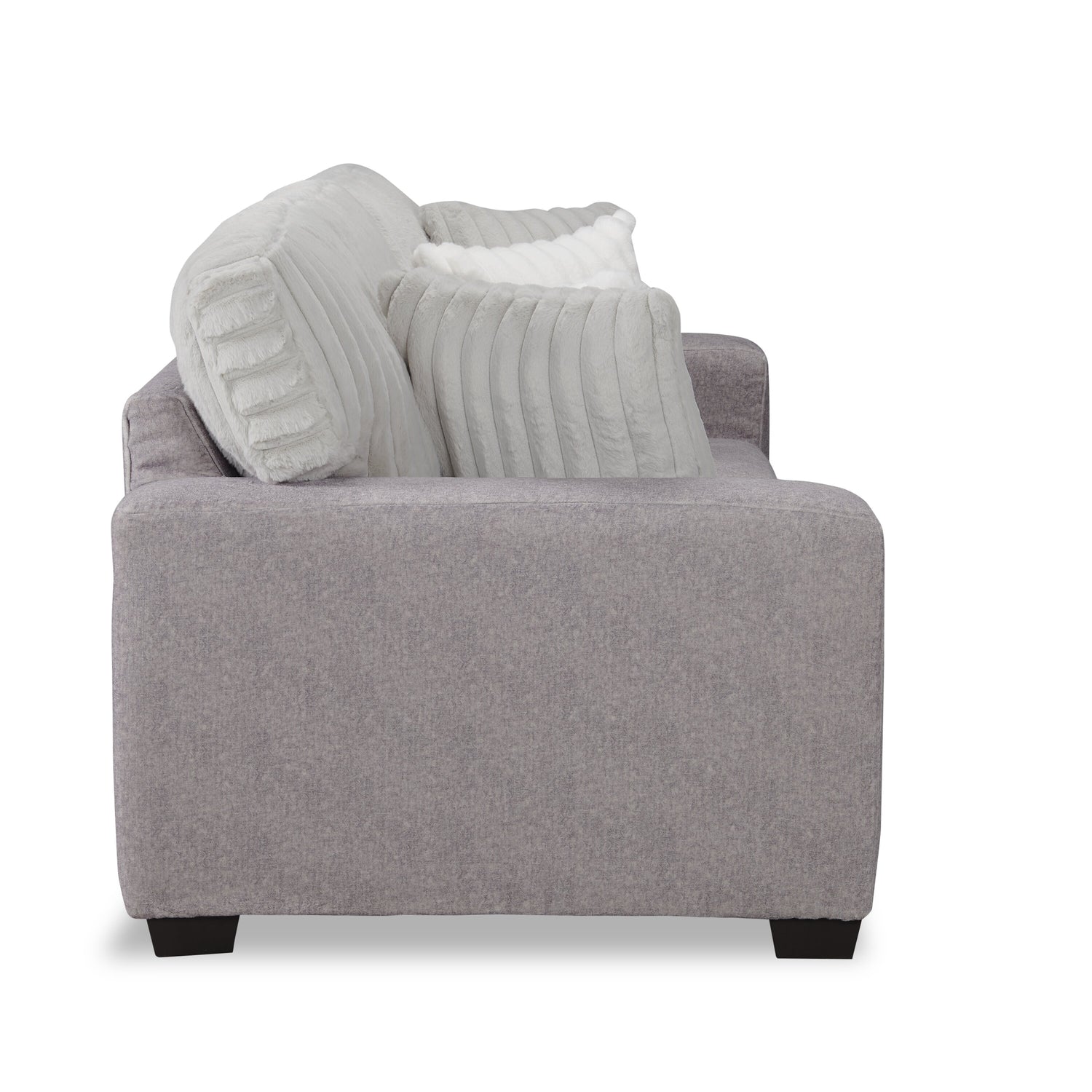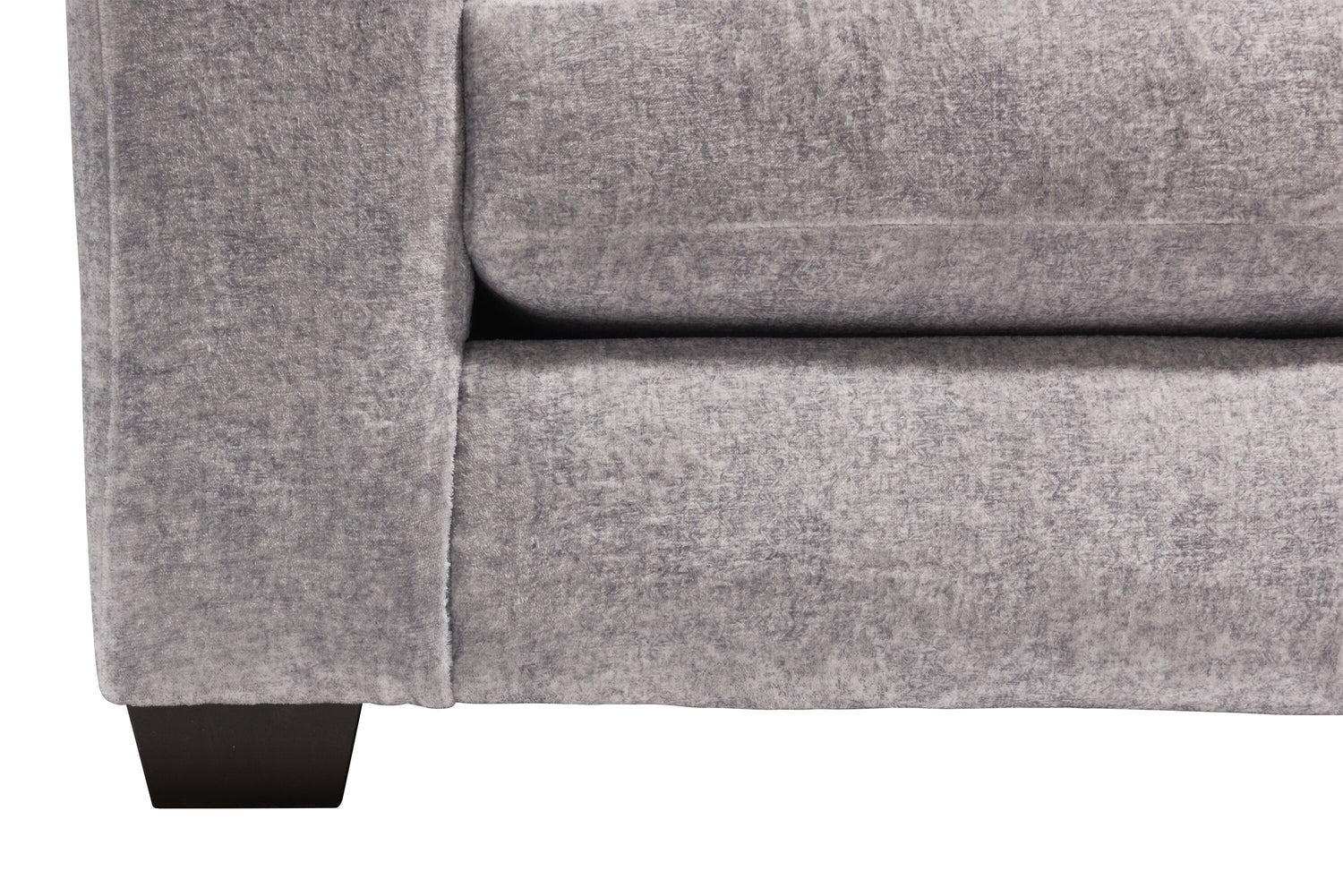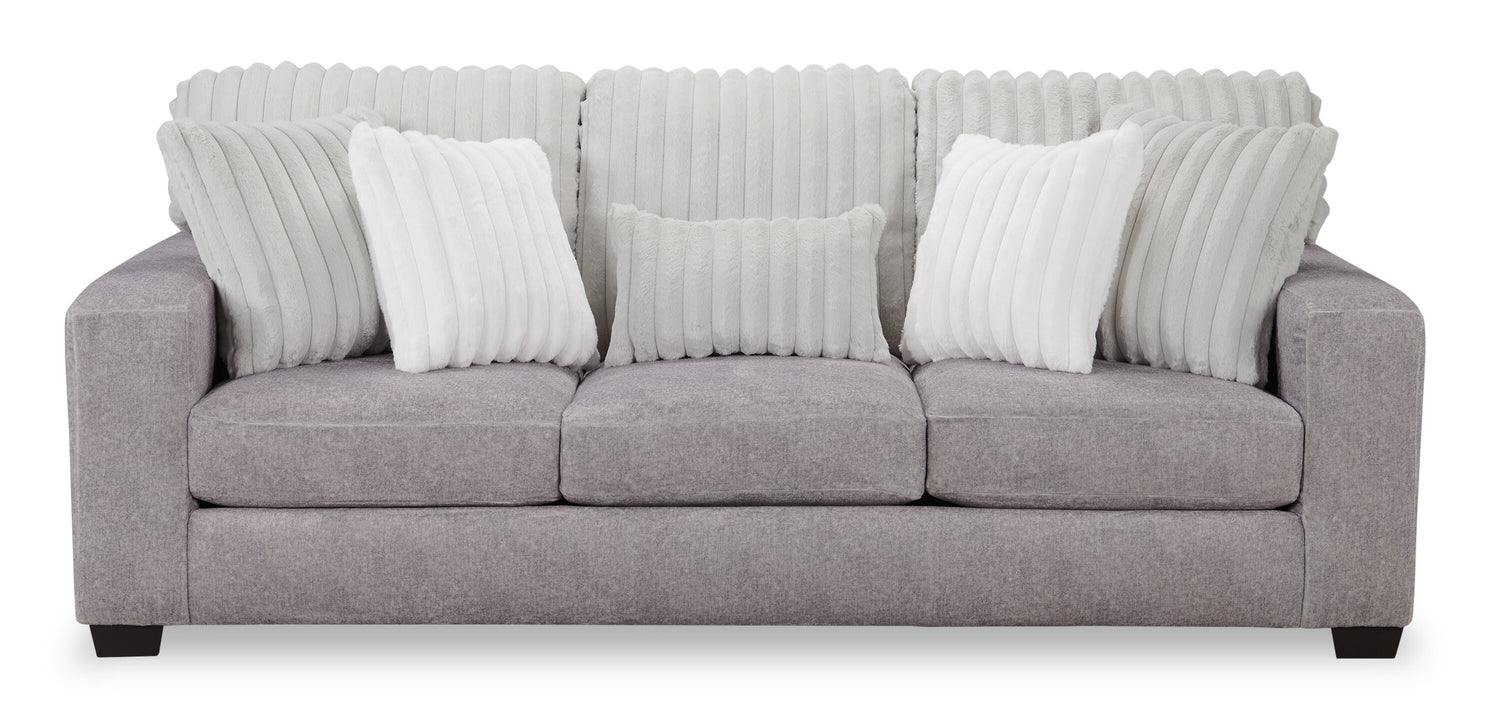 | Détails décoratifs | Le polyester gris clair à rainures enveloppe le coussin de dossier et les coussins décoratifs afin de créer une apparence unique de tissus contrastants. |