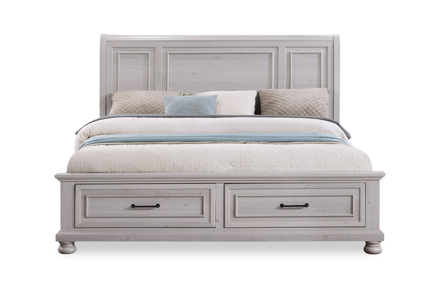 Lit plateforme de rangement Kylie sable avec tête de lit et cadre de lit - format très grand lit