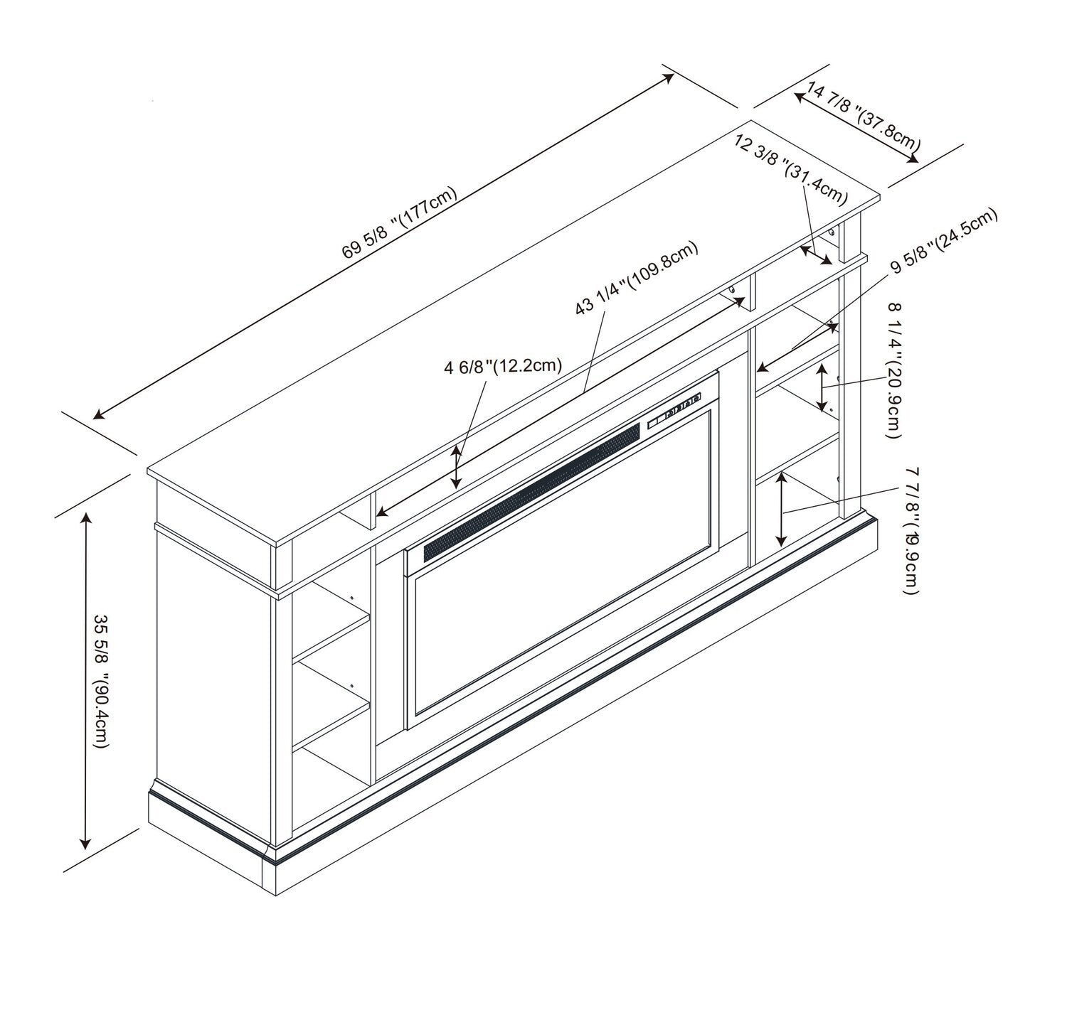 Largeur : 69,7 po (177,0 cm) Hauteur : 35,6 po (90,4 cm) Profondeur : 14,9 po (37,8 cm)
