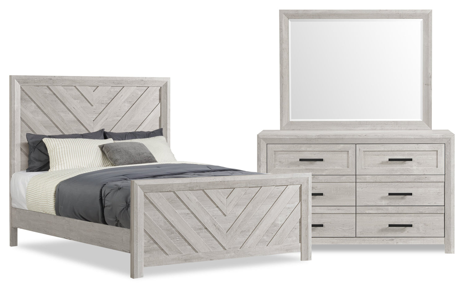 | Vendu séparément | La commode, le miroir, la commode verticale et la table de nuit Lark assortis. |