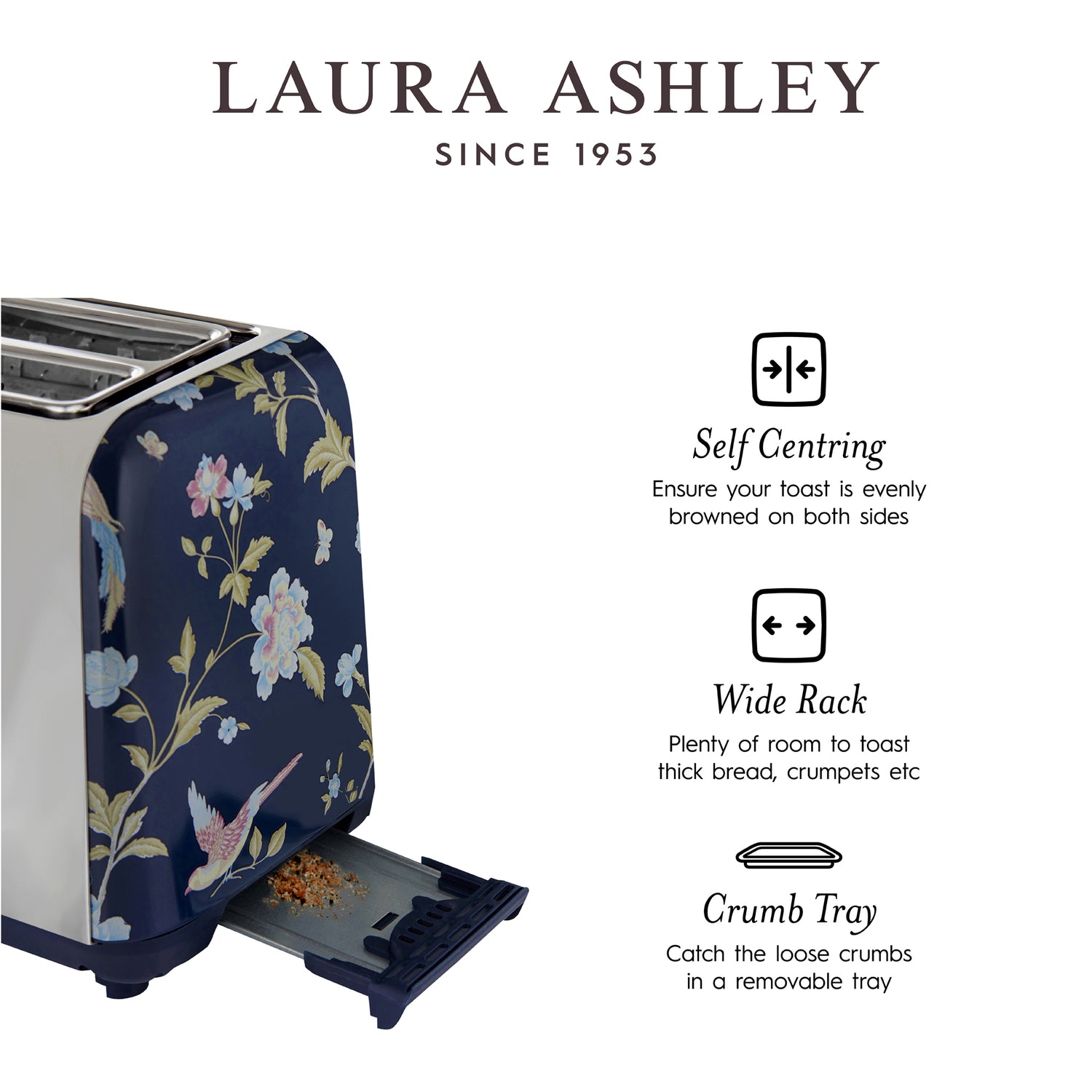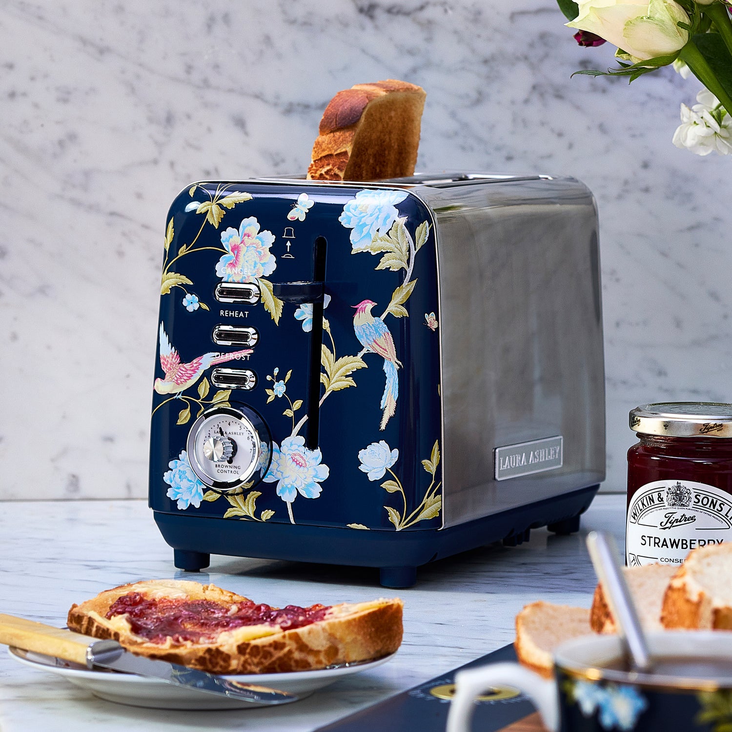 Si vous êtes à la recherche d’un grille-pain multifonctionnel qui non seulement prépare la rôtie parfaite, mais qui peut également faire cuire des bagels délicieux, des crumpets savoureux et des tranches de pain épaisses saines, ne cherchez pas plus loin! Le grille-pain Laura Ashley à deux tranches est le match parfait pour préparer votre déjeuner et décorer votre cuisine en même temps. Chaque grille-pain est décoré à la main et fini avec un revêtement lustré résistant aux rayons UV de qualité supérieure afin d’assurer qu’il soit magnifique jour après jour. Ce grille-pain à deux tranches possède toutes les fonctions nécessaires pour créer le déjeuner parfait pour votre famille et vos amis. La commande de chaleur à sept réglages vous offre un grillage précis. Un levier à remontée élevée fait en sorte qu’il soit sécuritaire et facile de retirer vos rôties chaudes sans vous brûler les doigts. Fabriqué en acier inoxydable durable de qualité supérieure, il est fait pour durer et facile à garder propre dans la cuisine. Une fonction de centrage automatique permet le grillage uniforme de tous les côtés, peu importe l’épaisseur. Vous pouvez même faire réchauffer des croissants sur la grille de réchaud incluse pour un délicieux déjeuner de style continental.