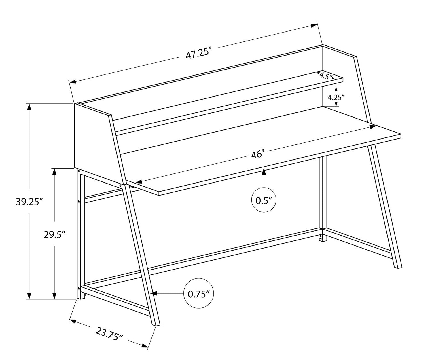 Largeur : 49 po (124,5 cm) Hauteur : 5 po (12,7 cm) Profondeur : 26 po (66,0 cm)