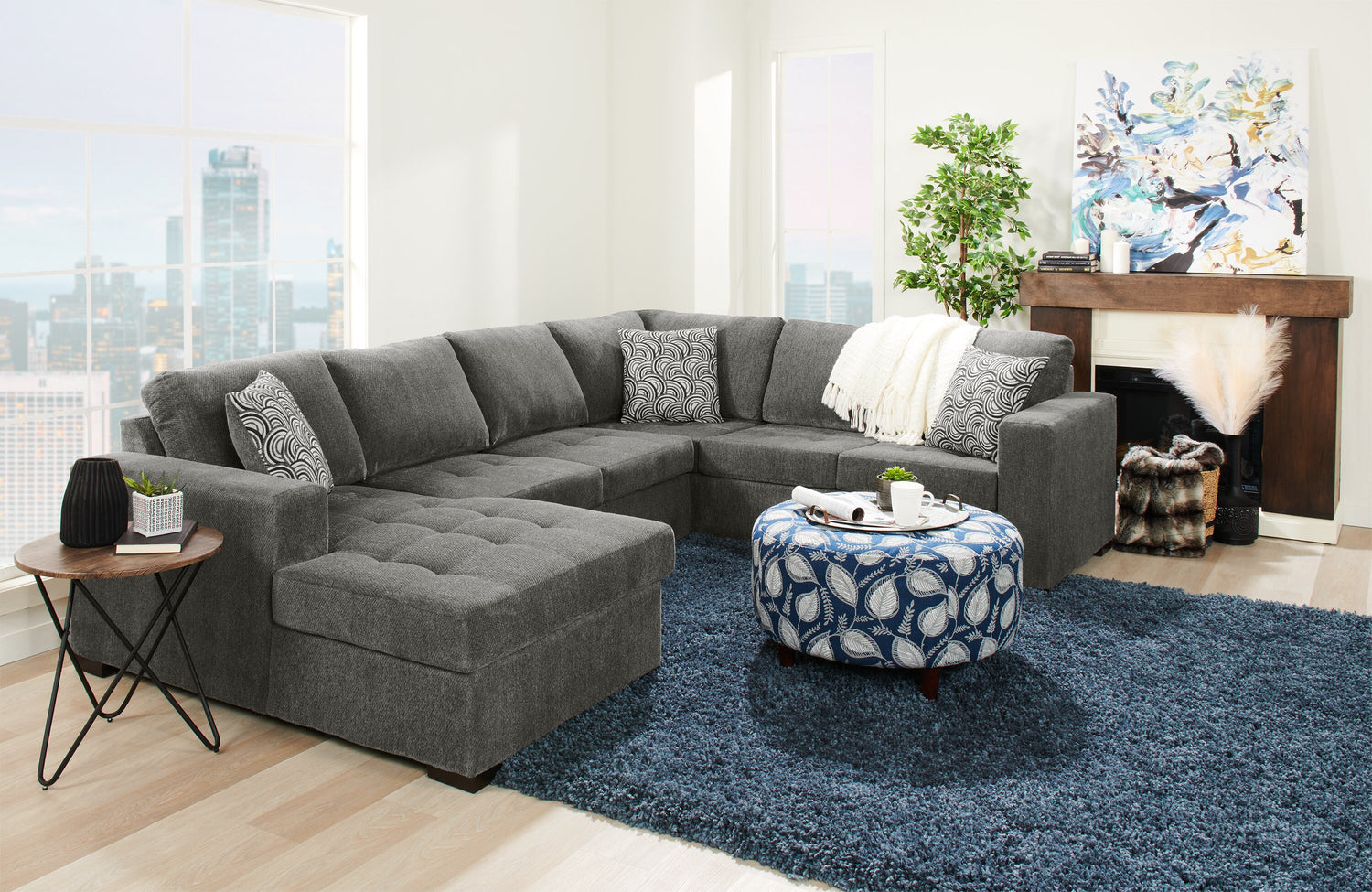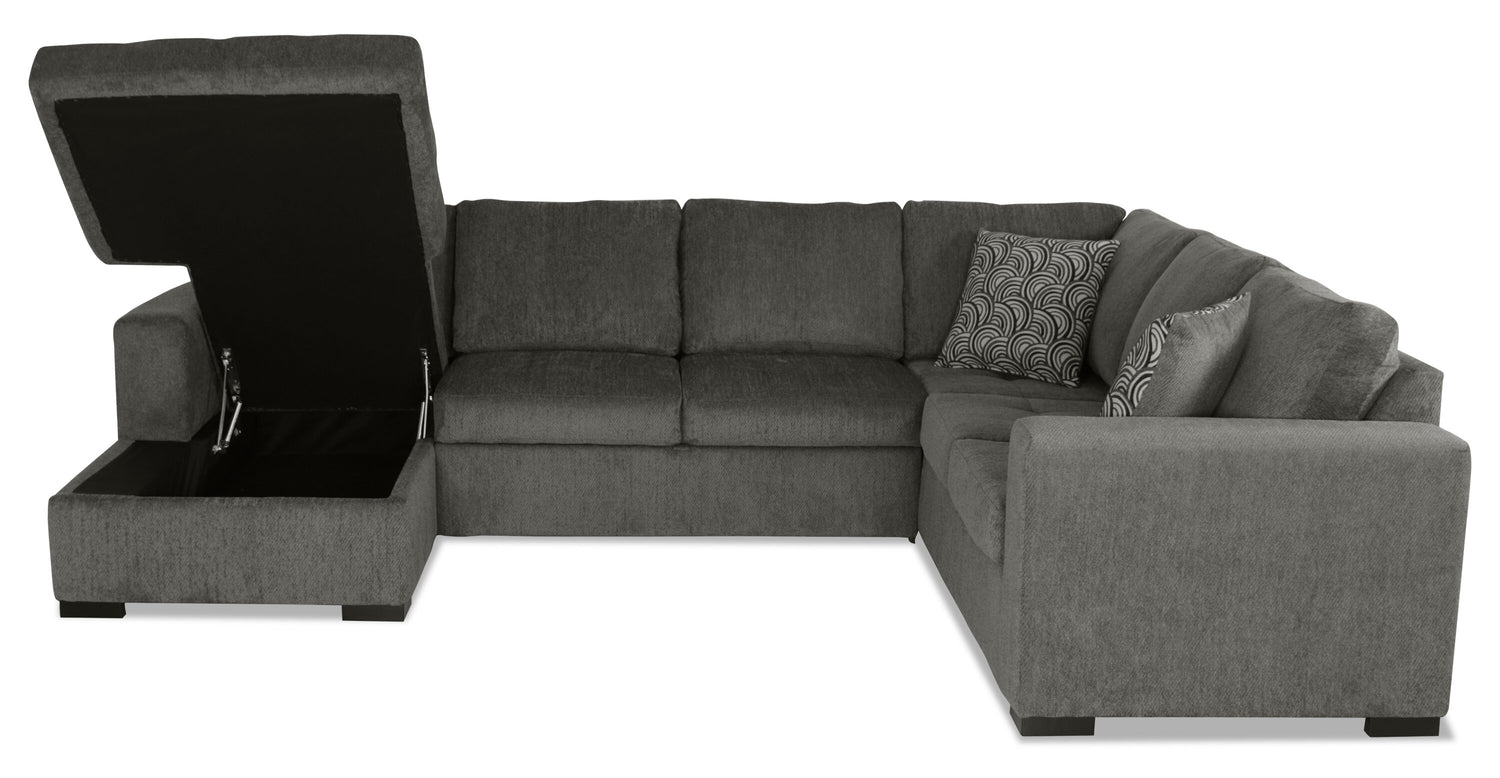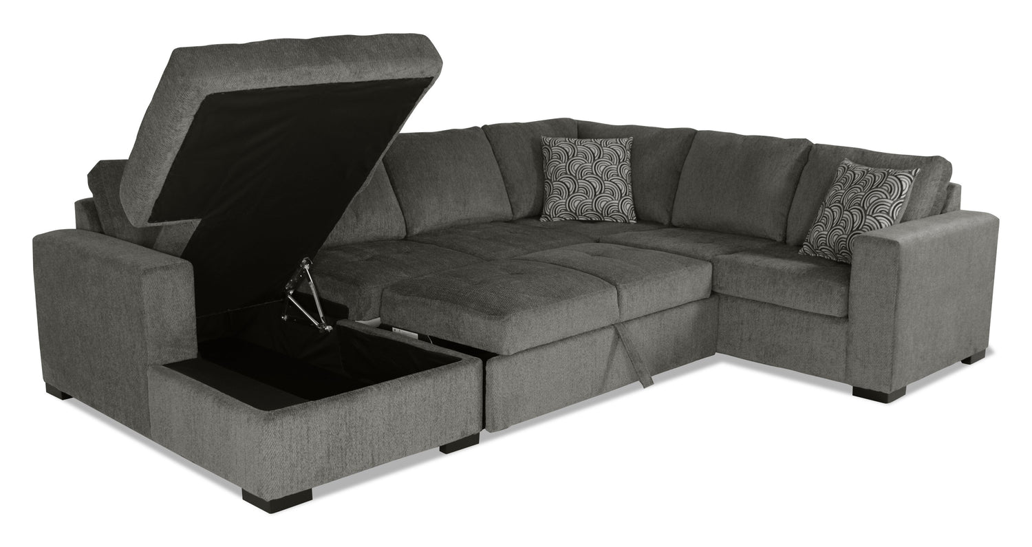 Sofa-lit sectionnel de gauche Legend 3 pièces fabriqué au Canada en tissu de chenille avec fauteuil long de rangement - brun étain