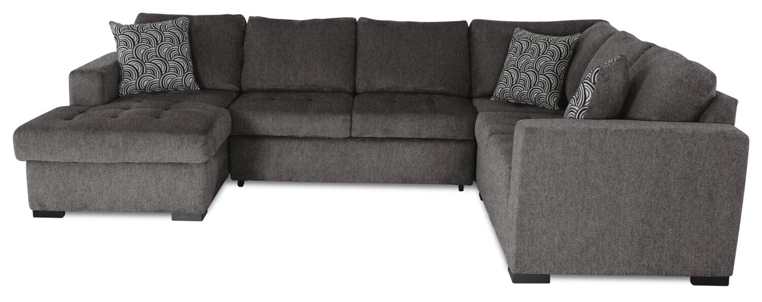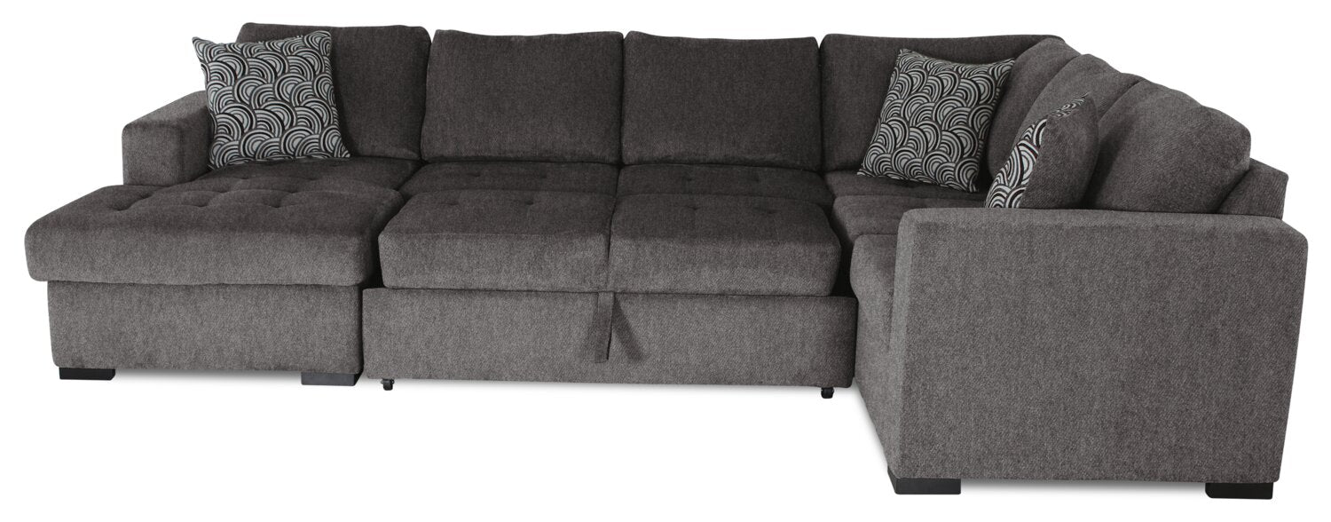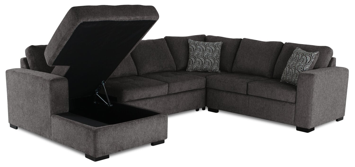 Sofa-lit sectionnel de gauche Legend 4 pièces fabriqué au Canada en tissu de chenille avec fauteuil long de rangement - brun étain