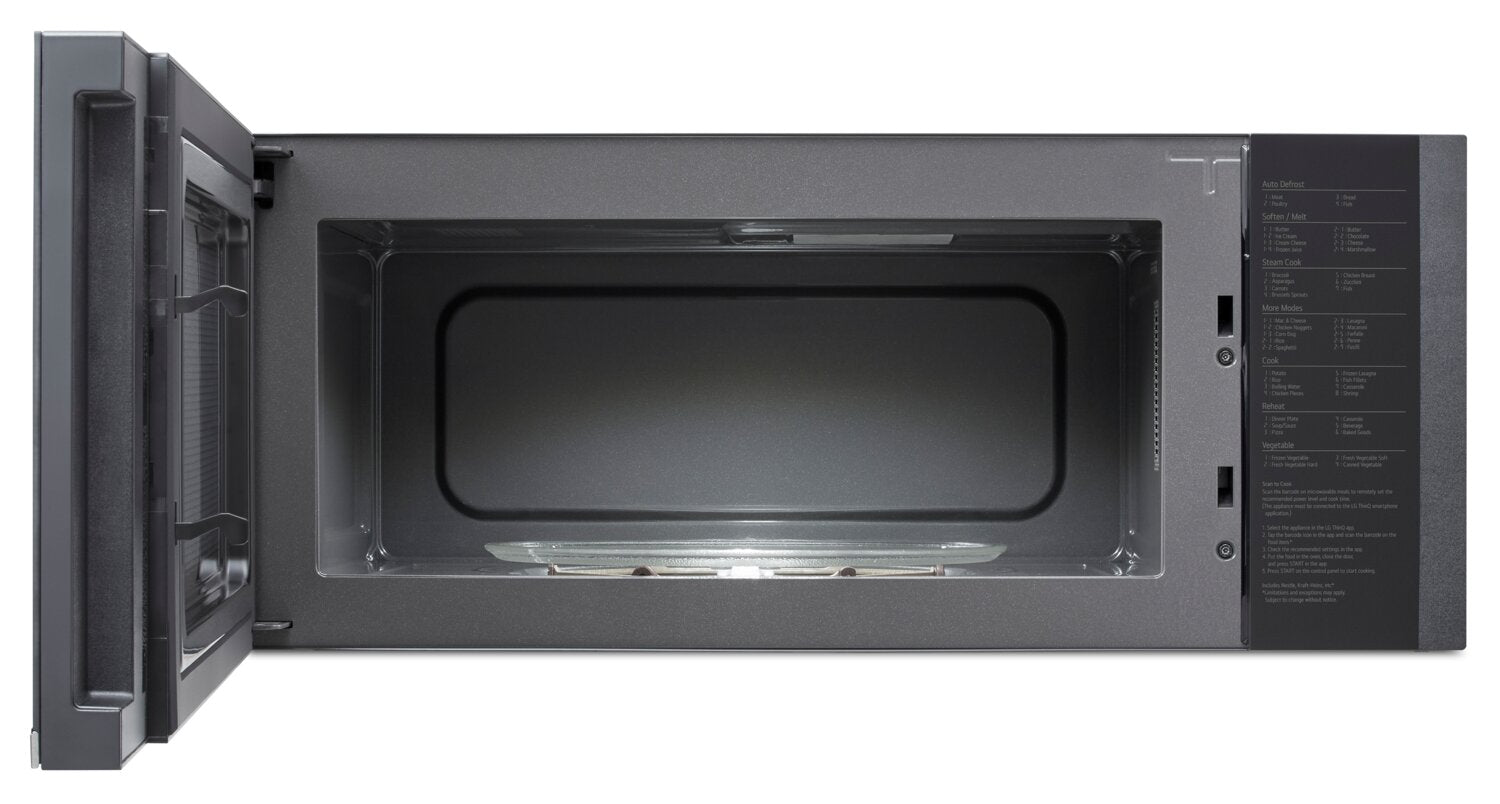 Repas parfaitement cuits avec cuisson par capteur : Cuisson automatique pratique : Ventilation de 550 pi3/min à 4 vitesses : Conception à profil bas : Porte à dégagement zéro pour une installation affleurée : Commandes en verre SmoothTouchMC : Une demeure plus intelligente avec l’application ThinQMD : Préparation d’aliments congelés par balayage : Intérieur avec revêtement EasyCleanMD : |