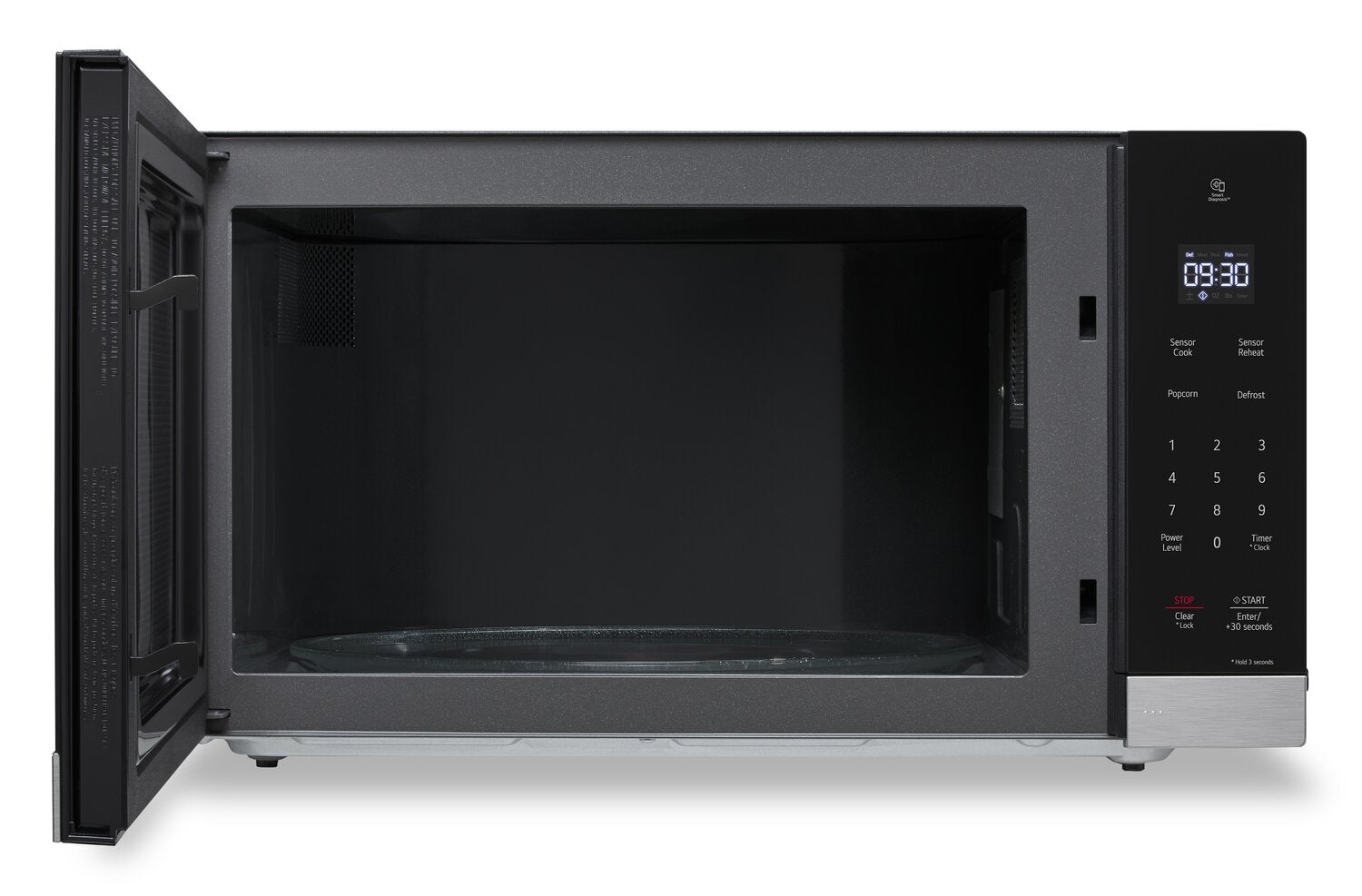 Cuisson plus uniforme et meilleure décongélation : La cuisson par capteur aide à chauffer les plats à la perfection : Modes de cuisson automatique pratiques : Commandes en verre SmoothTouchMC élégantes : Anneau de plateau tournant hexagonal pour une stabilité améliorée : Éclairage intérieur éclatant à DEL : Nettoyage simplifié grâce à l’intérieur EasyCleanMD : Verrouillage de la porte à l’épreuve des enfants : |