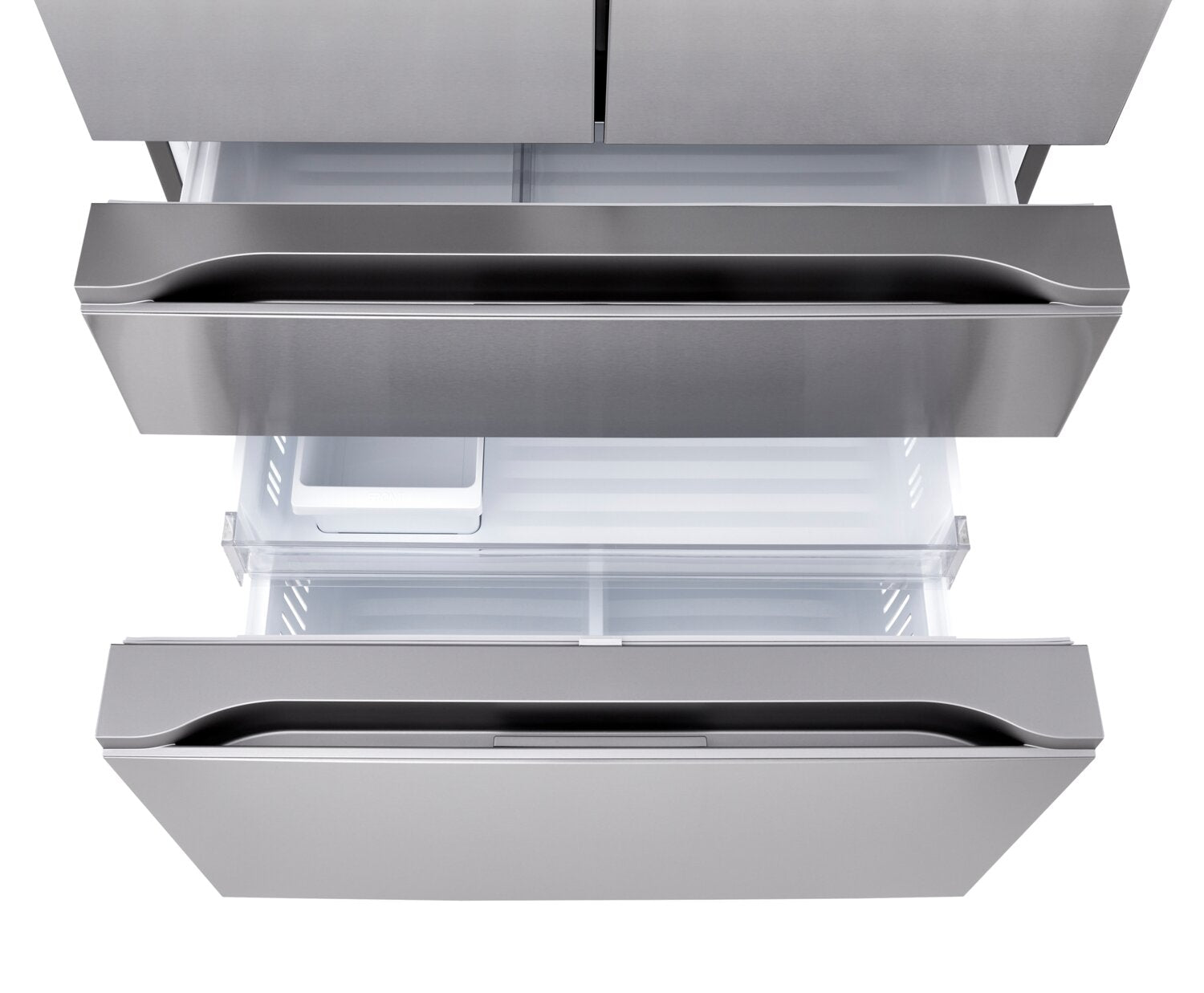 Grande capacité : Compatibilité intelligente : Le style en tête : Porte anticlaquement : Tiroir Full-ConvertMC : Distributeur d'eau interne : Appareil homologué ENERGY STARMD : |