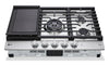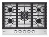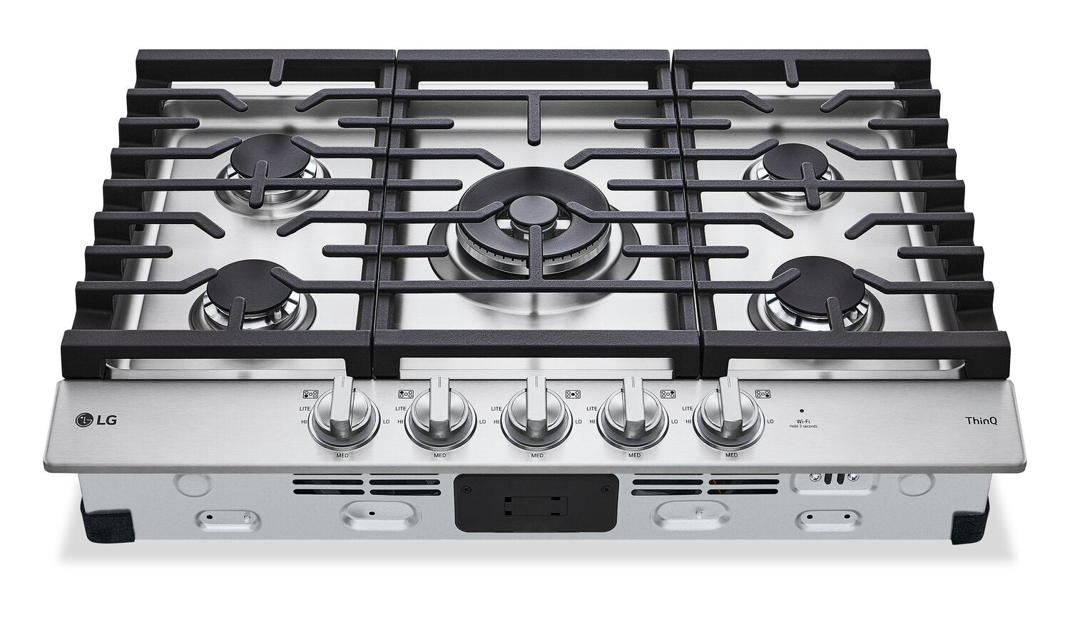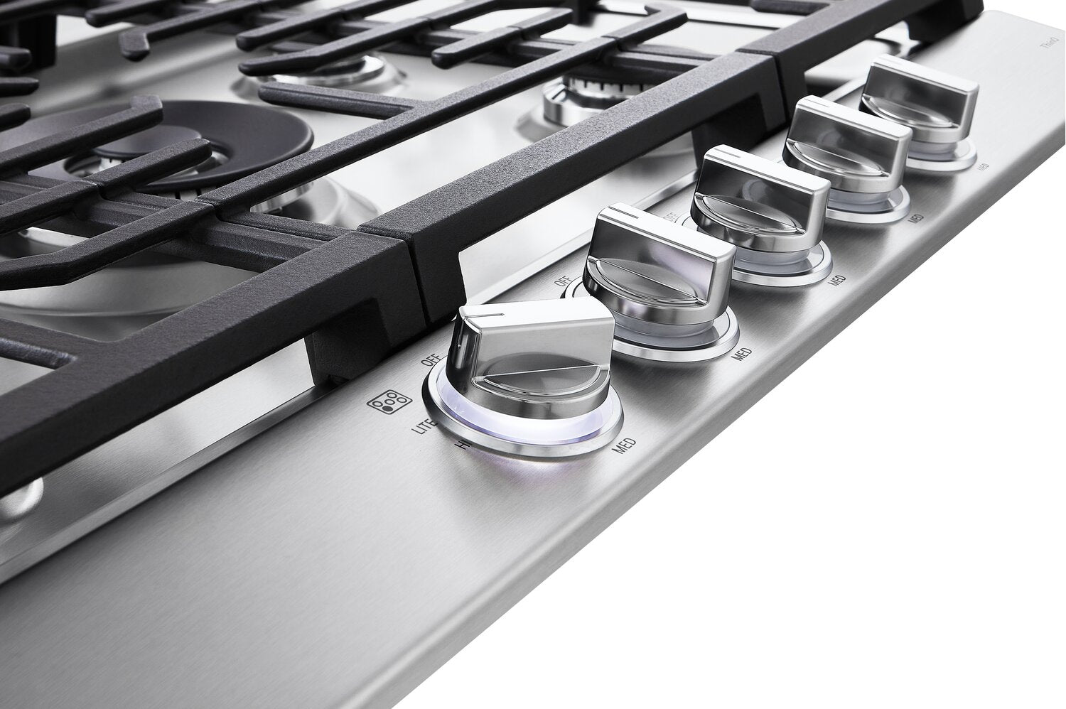 Cinq brûleurs à gaz scellés : Brûleur double UltraHeatMC de 22 000 BTU : Plaque chauffante amovible en fonte : Boutons illuminés à DEL blancs : Grilles continues en fonte : Surface de cuisson EasyCleanMD en acier inoxydable : Système de rallumage automatique : Compatibilités intelligentes : |