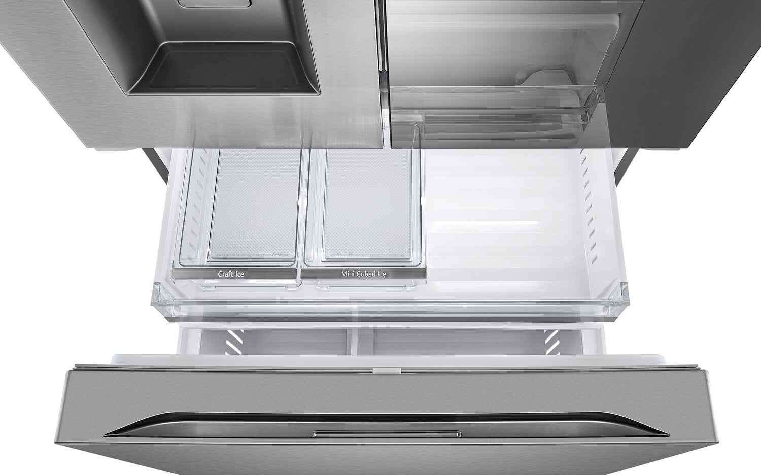 Cognez deux fois pour voir à l’intérieur : Quatre types de glaçons : Ce qui est à l’intérieur compte : Système de refroidissement à conduits d'air multiples : Capacités intelligentes : Tablette pliable : Appareil homologué ENERGY STARMD : |