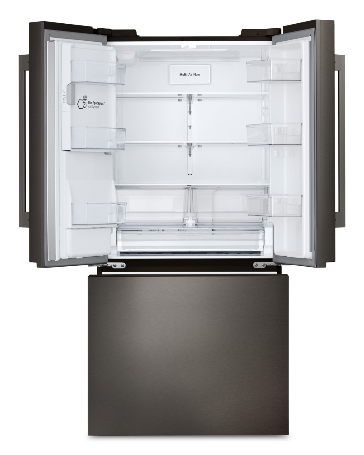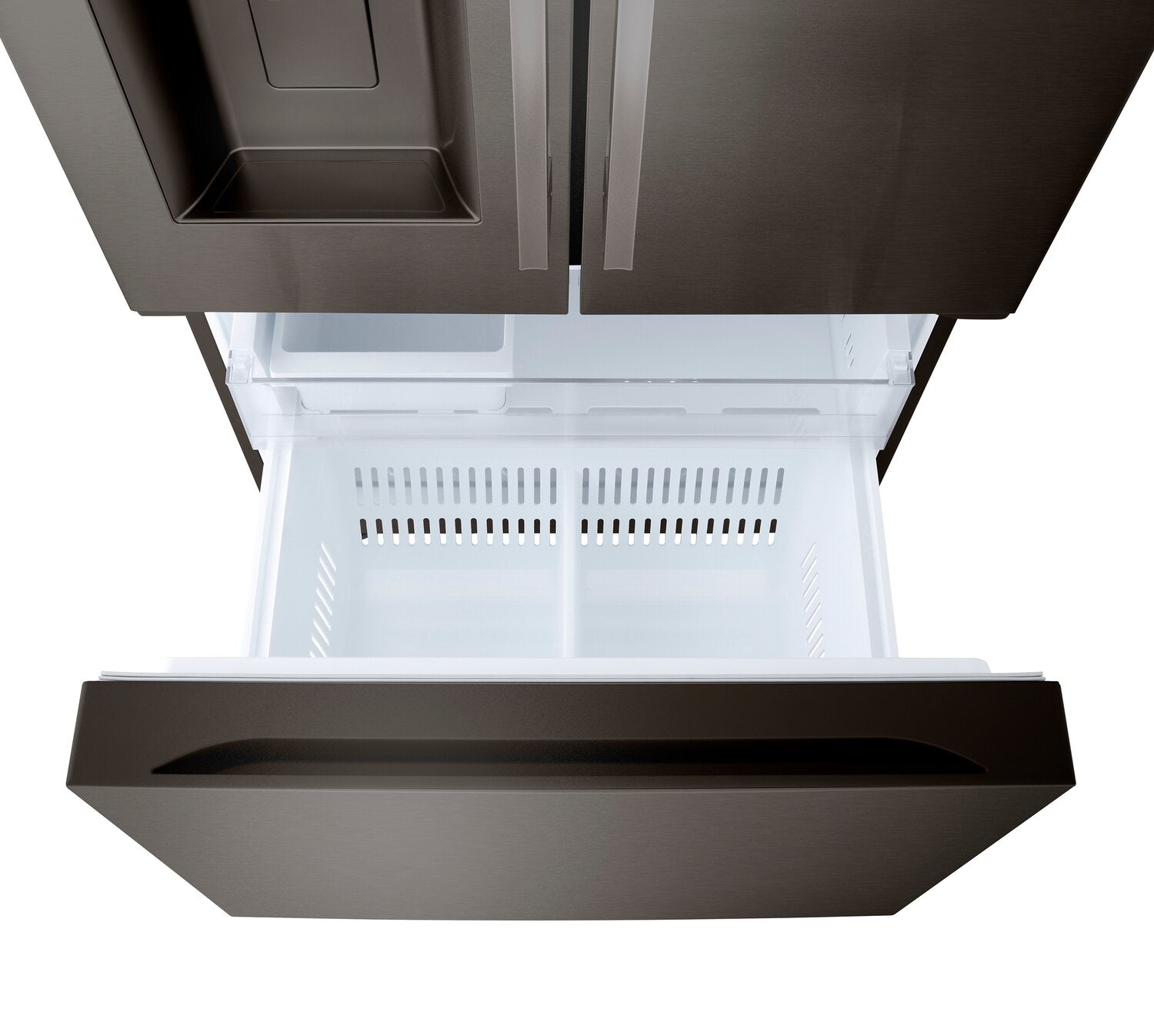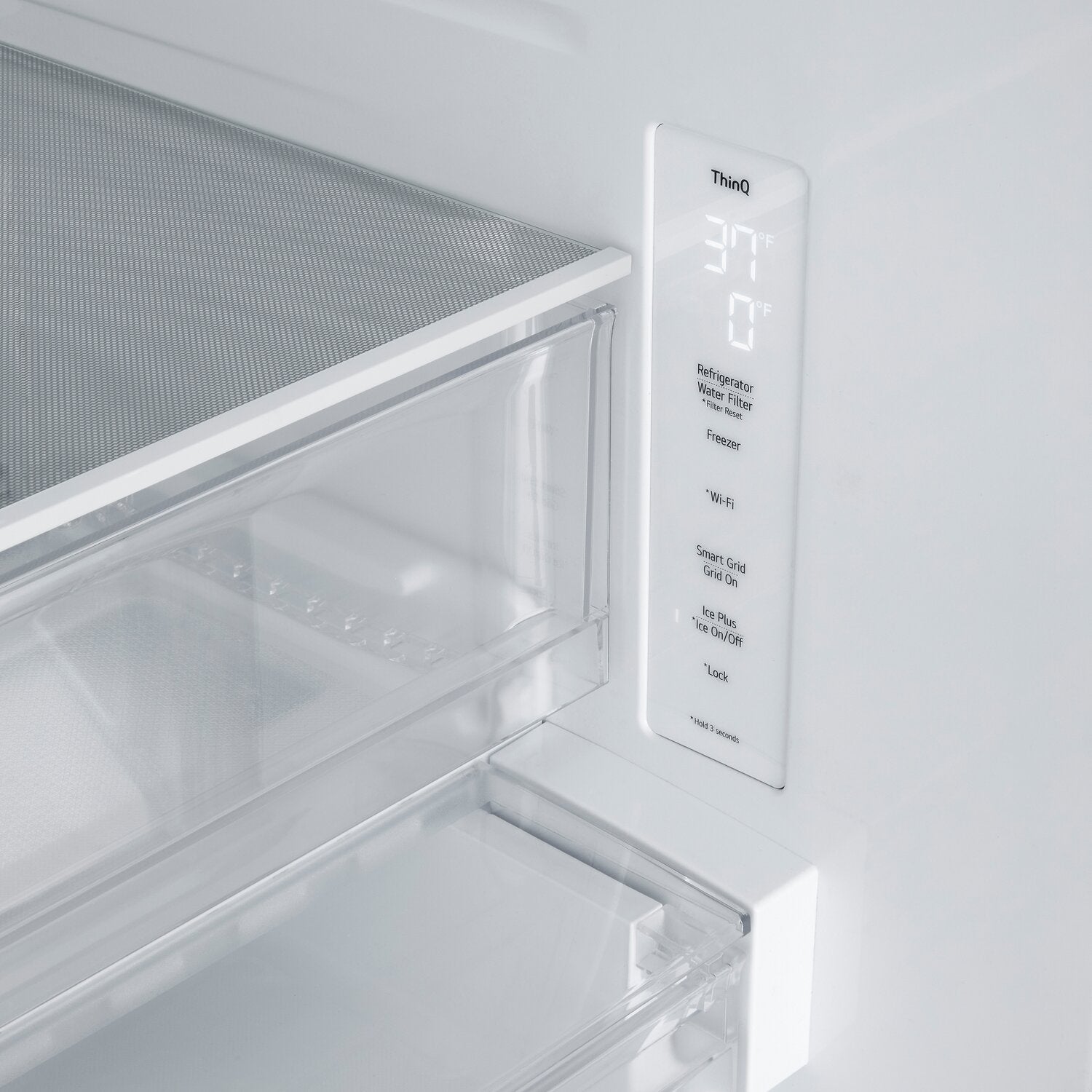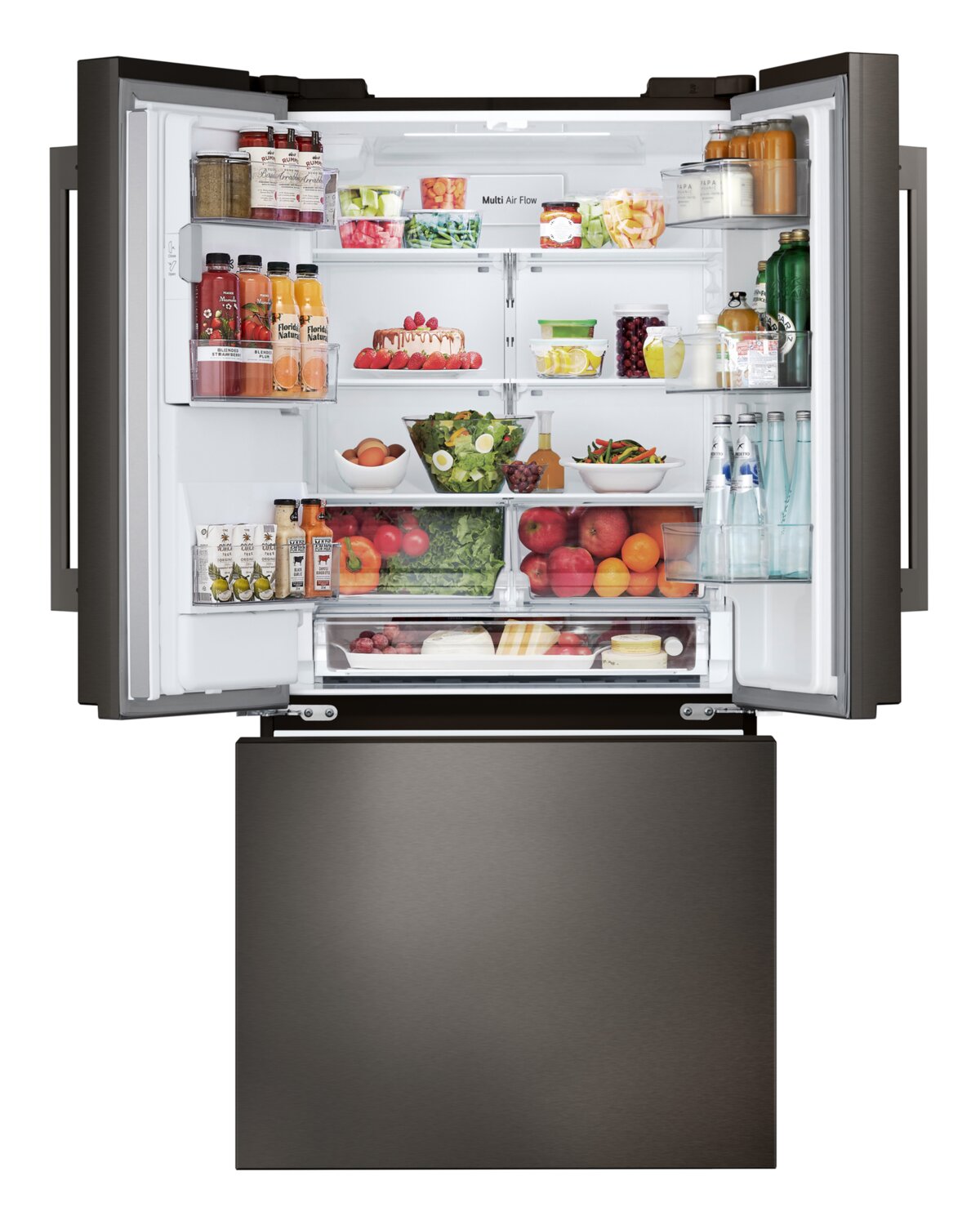 Distributeur d’eau et de glaçons externe : Acier inoxydable PrintProofMC : Technologie intelligente : Conception spacieuse à trois portes : Tablettes réglables : Compresseur linéaire : |
