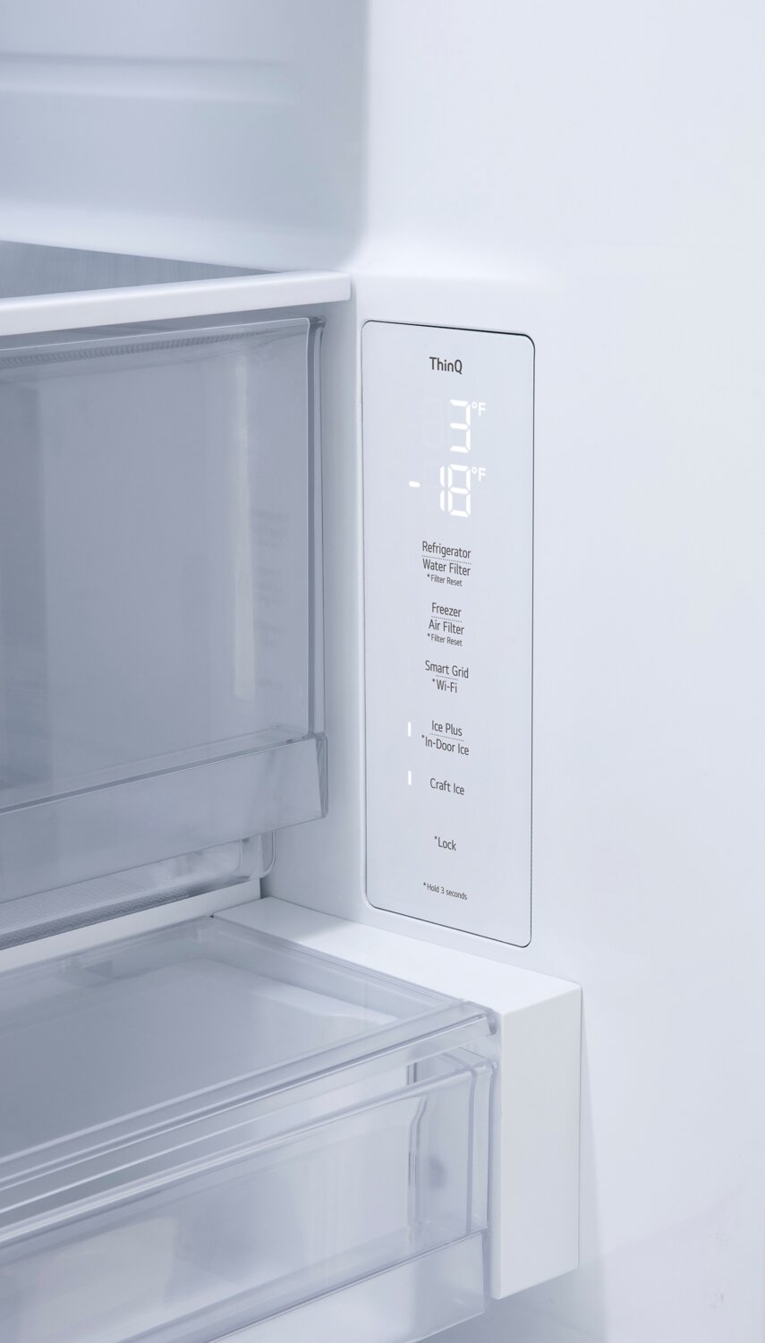 Portes grandes ouvertes, même en espaces restreints : Style encastré : Obtenez plus avec des portes minces : Style de qualité supérieure, ouverture aisée : Glaçons en cube, glace concassée et glaçons Craft IceMC : Ne manquez plus jamais de glaçons : L’application ThinQMD simplifie votre vie : Une taille qui convient à tout : Espace accru sur les tablettes : |