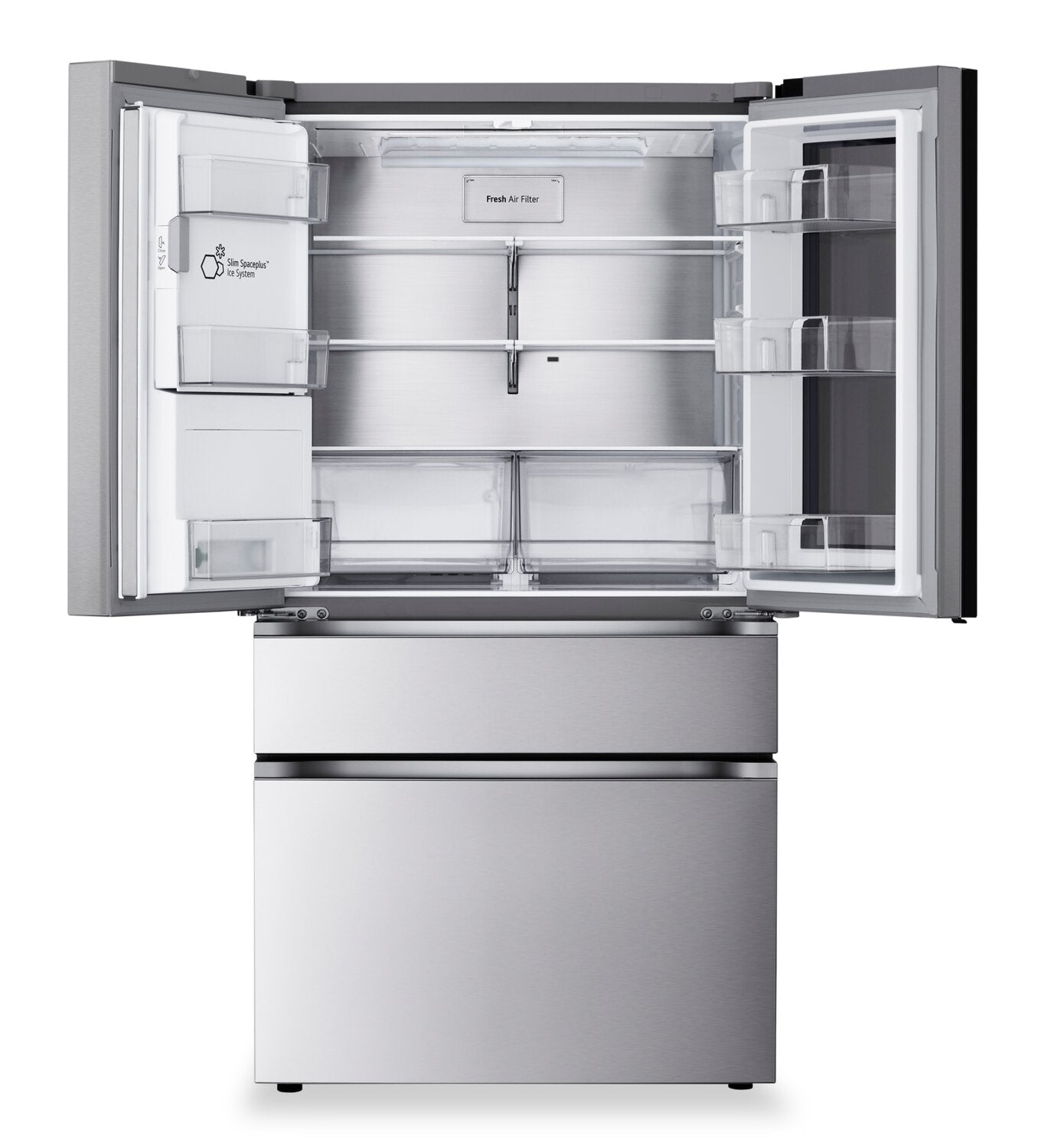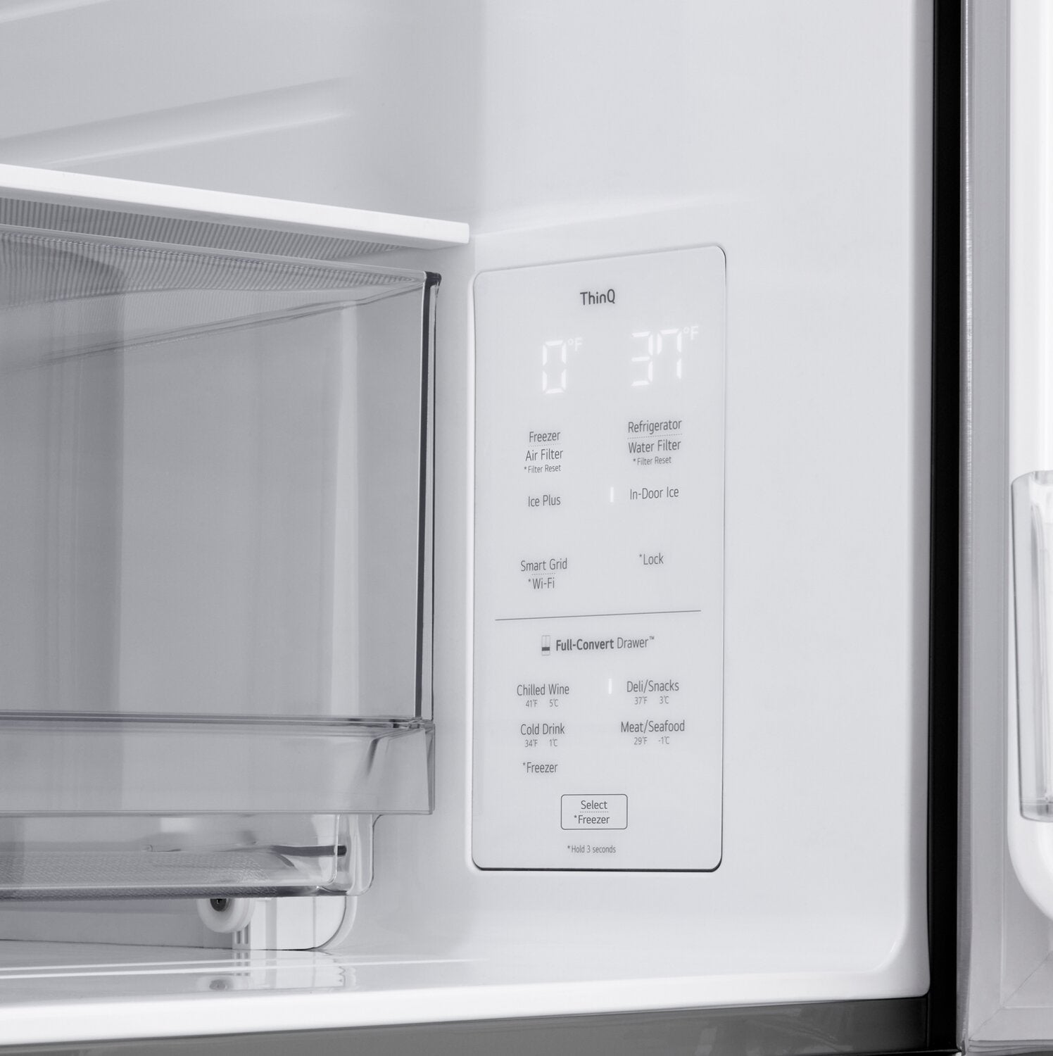 Faites grande impression dans votre décor avec MyColourMC : Voyez à l’intérieur en gardant vos aliments frais : Fini les claquements : Rangez-en plus : Plus de glaçons quand vous en avez besoin : L’application ThinQMD simplifie votre vie : Tiroir Full-ConvertMC : Distributeur haut d'eau et de glaçons : ThinQ Care aide à maintenir le bon fonctionnement de vos électroménagers : |