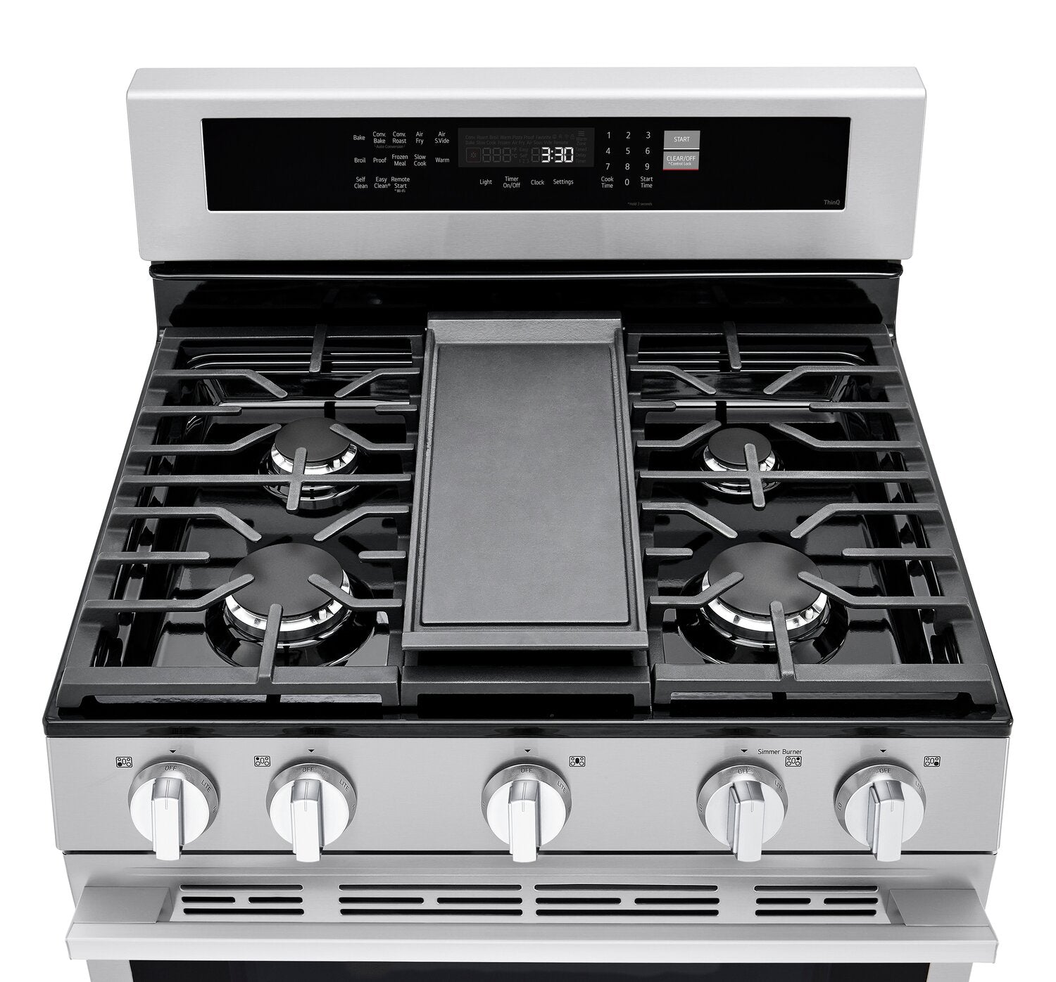 Saveur croustillante pour nourrir une foule : Puissance accrue pour une ébullition plus rapide : Obtenez des résultats supérieurs grâce à la convection ProBake ConvectionMD : De l’espace pour la dinde et les accompagnements : Une demeure plus intelligente commence avec l’application ThinQMD de LG : Cognez deux fois pour voir ce qui cuit : |