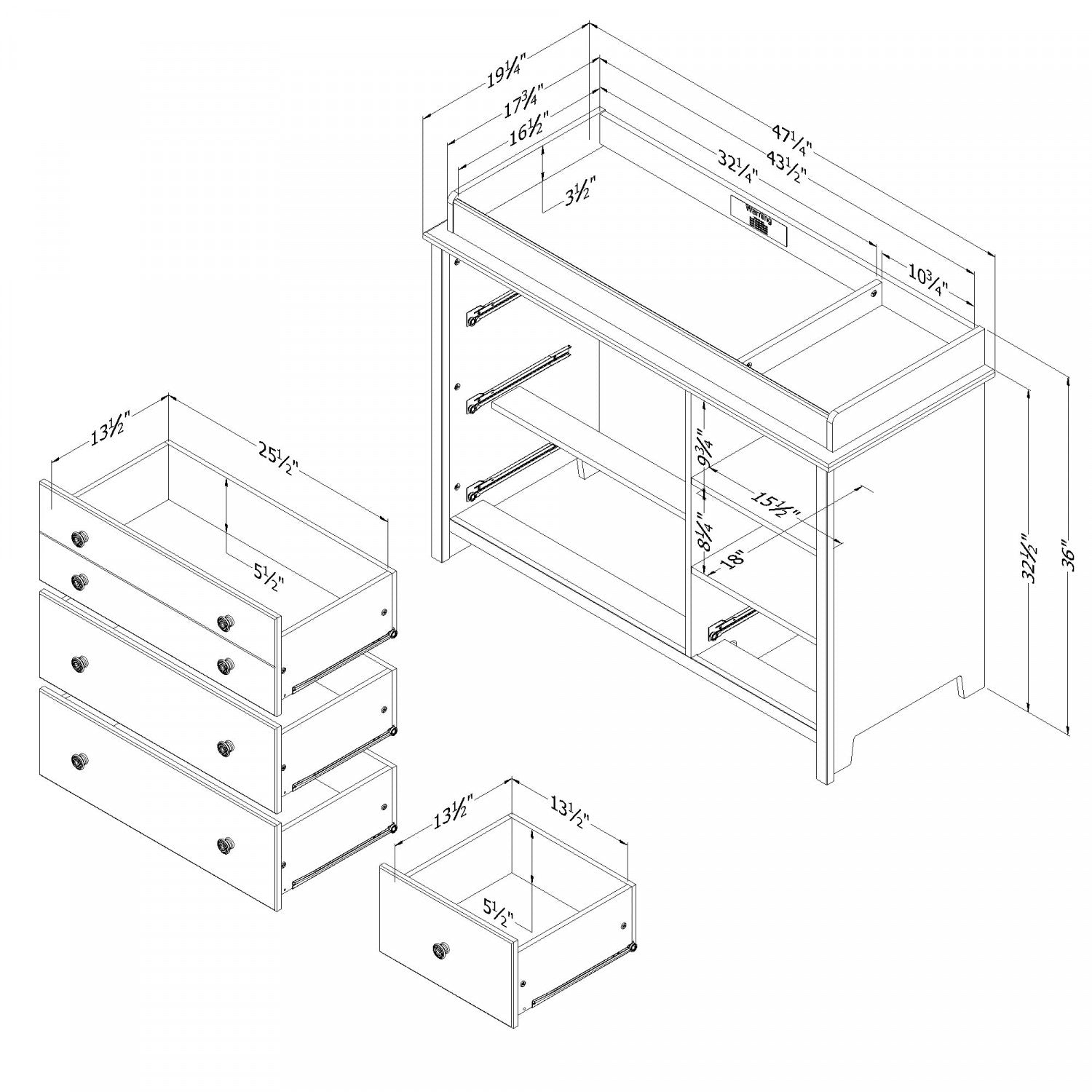 Largeur : 47,25 po (120,0 cm) Hauteur : 36 po (91,4 cm) Profondeur : 19,25 po (48,9 cm)
