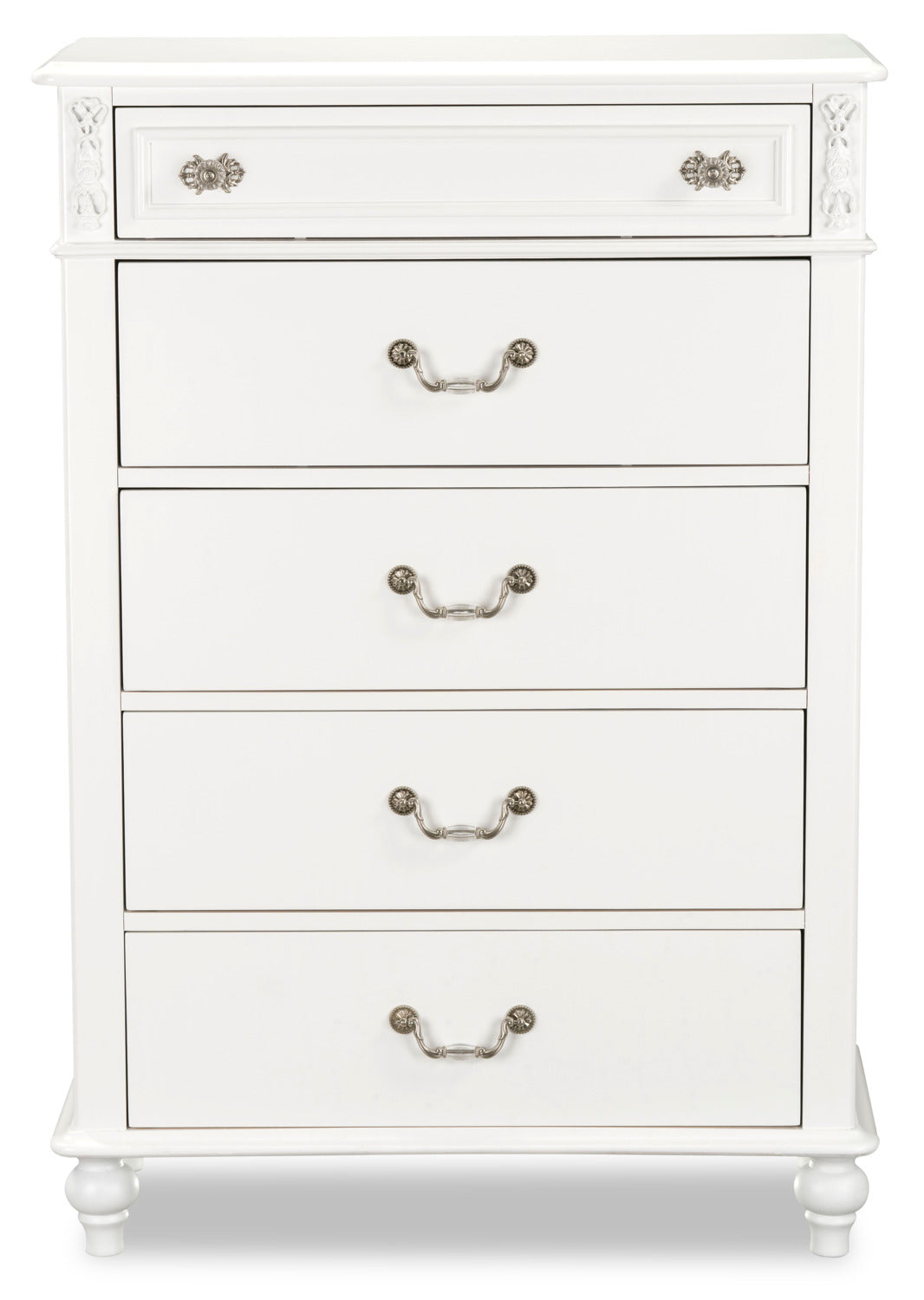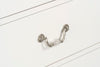 | Quincaillerie | Les poignées en nickel avec ornements de cristaux décorent le devant des tiroirs. |
