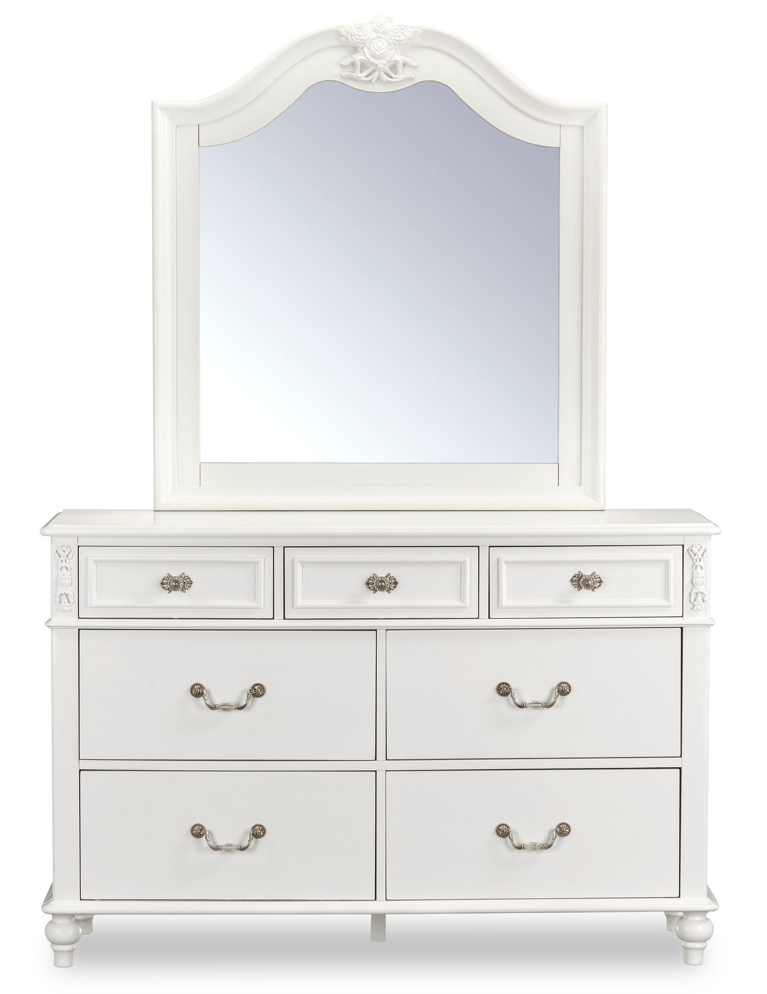 | Quincaillerie | Les poignées en nickel avec ornements de cristaux décorent le devant des tiroirs. |