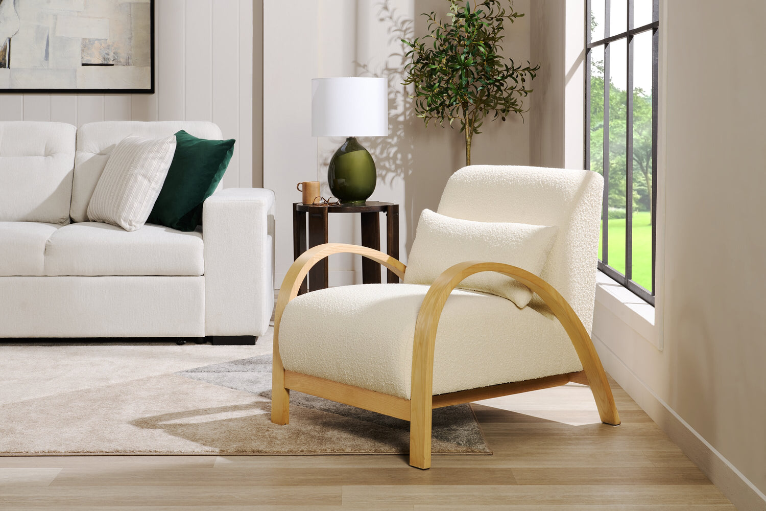 | Détails décoratifs | Des accoudoirs courbés à profil bas procurent une apparence ouverte et unique à ce fauteuil. |