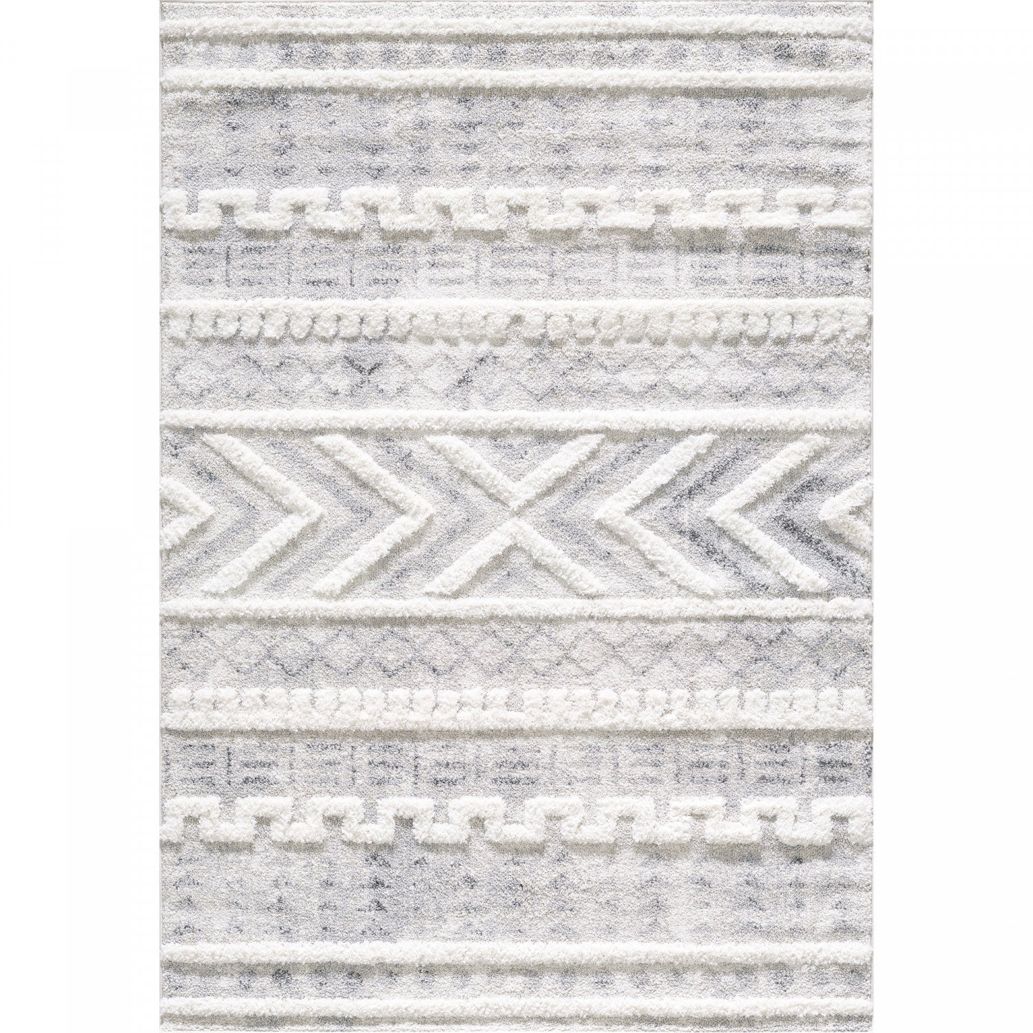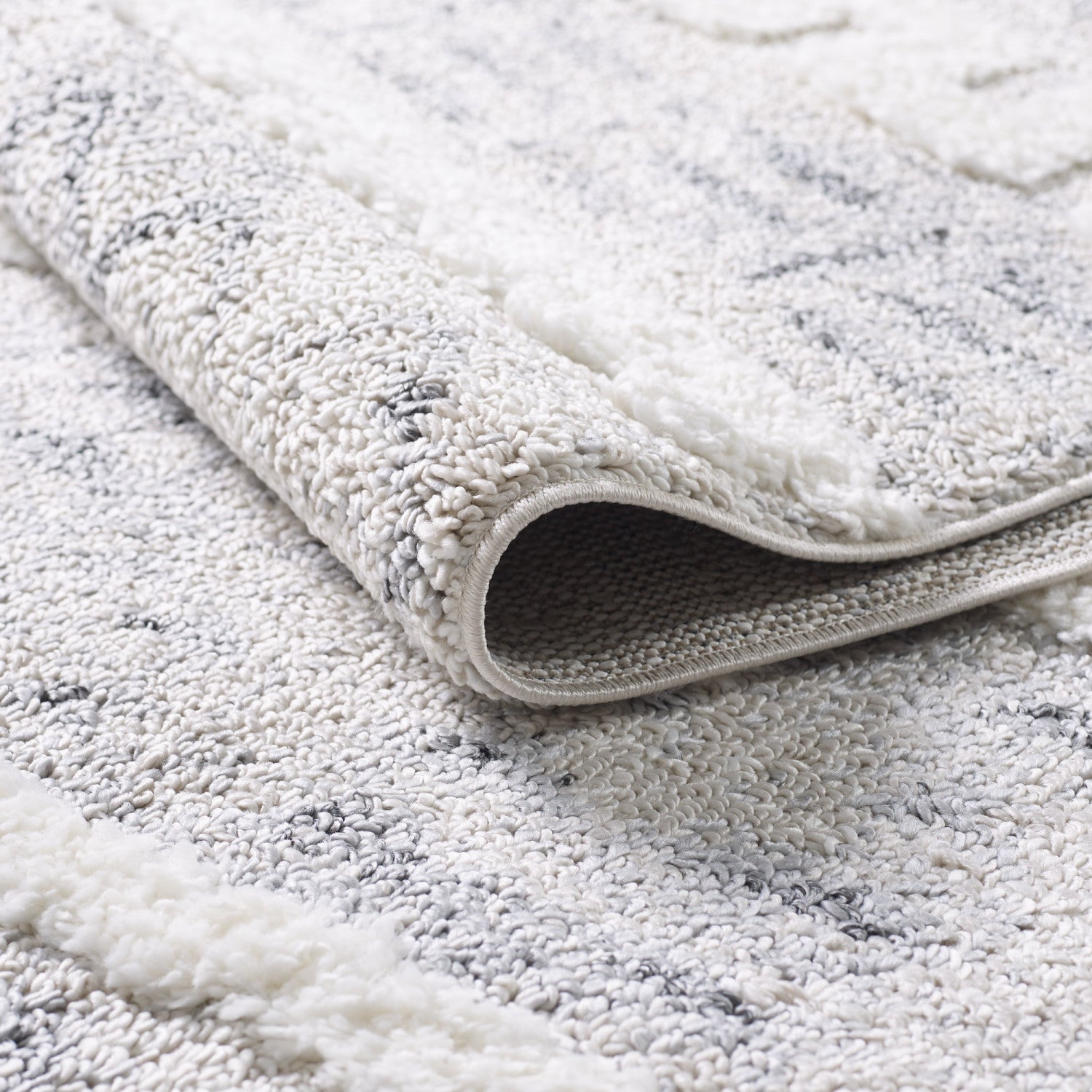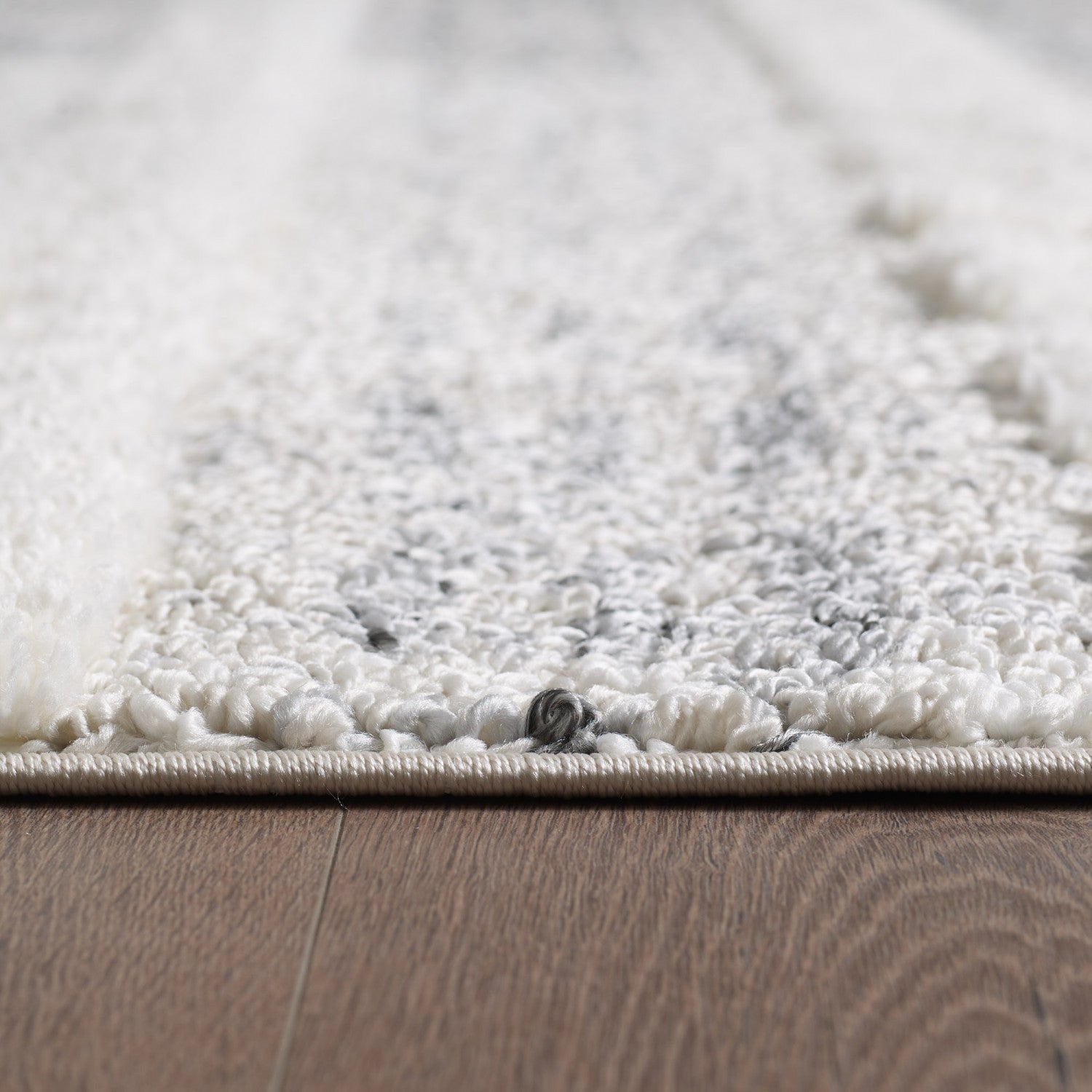 Carpette à poil long Lola crème à motif marocain géométrique - 6 pi 7 po x 9 pi 6 po