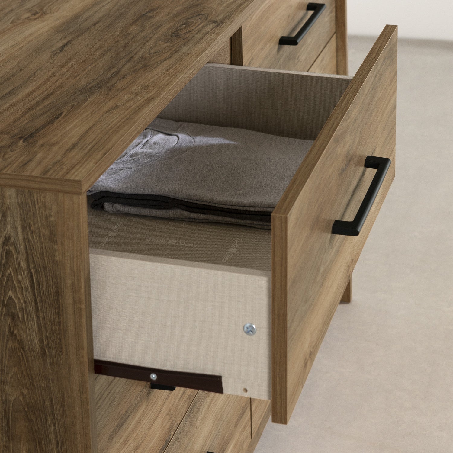 Organisez vos vêtements plus facilement en les triant par catégories dans ces six grands tiroirs de rangement. Chacun est installé sur des glissières en métal et peut soutenir jusqu’à 25 lb.