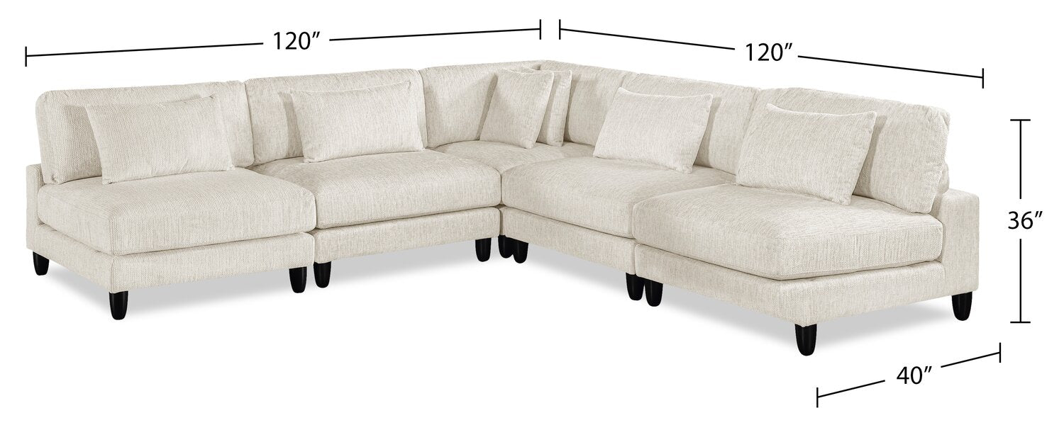 Sofa sectionnel modulaire sans accoudoirs Lounge 5 pièces en chenille - beige