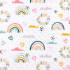 | Motif | Possède un motif d’arcs-en-ciel, de soleils, de nuages et de cœurs. |