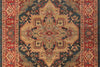 L’elegance ornementale de ce tapis traditionnel puise ses racines dans les motifs du vieux monde. Inspire des tapis Kazak classiques, son motif geometrique accrocheur compose de medaillons, palmettes et fleurs est encadre d’une bordure detaillee dans des teintes de rouge cramoisi, de bleu et d’or. Avec des references aux motifs ancestraux des tapis Heriz et Serapi, chaque design raffine est tisse avec precision a partir de fibres synthetiques douces, garantissant un tapis traditionnel concu pour resister a l’epreuve du temps.