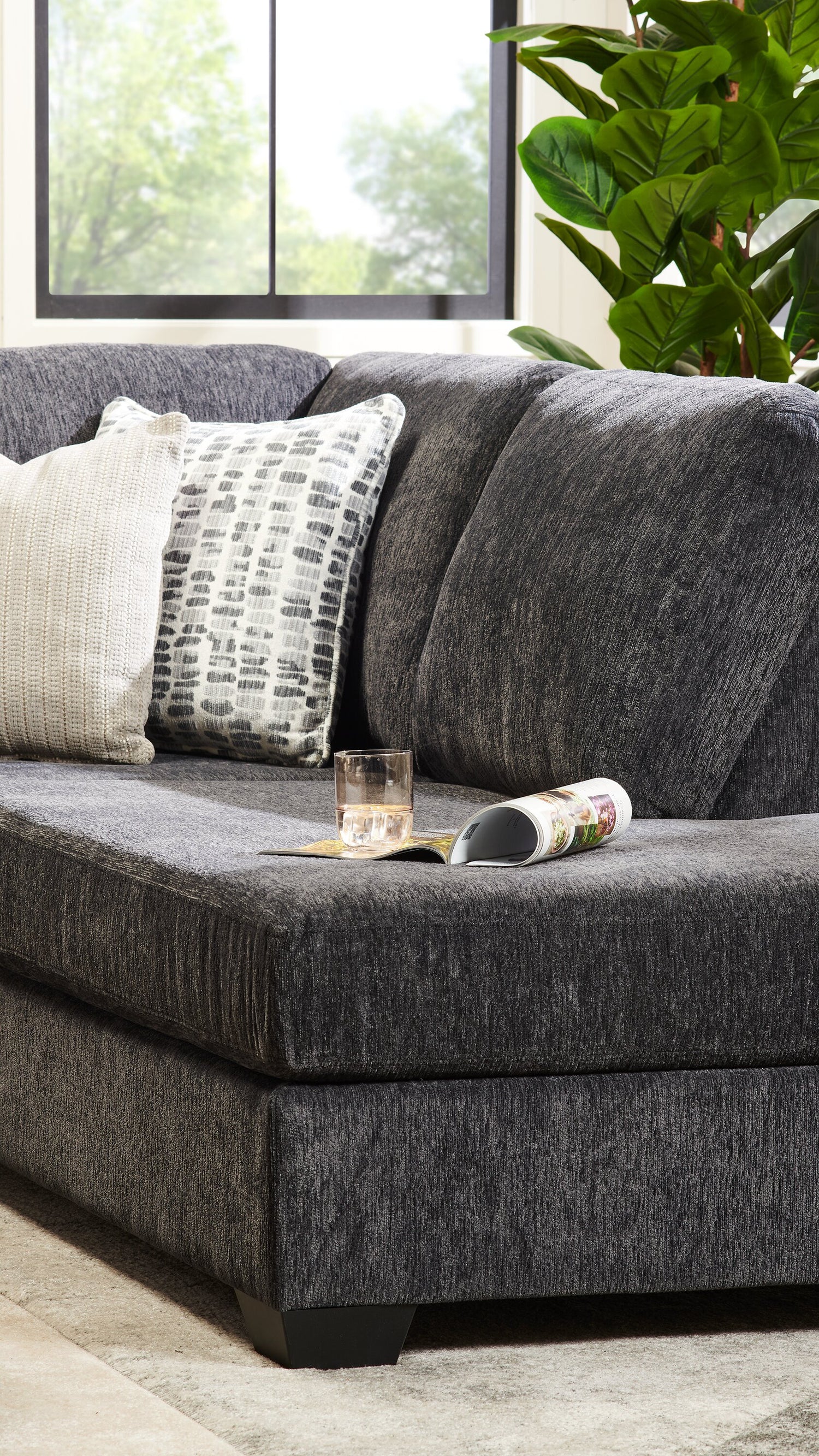 | Vendu séparément | Vous pouvez acheter le pouf de rangement assorti séparément de ce sofa sectionnel. |