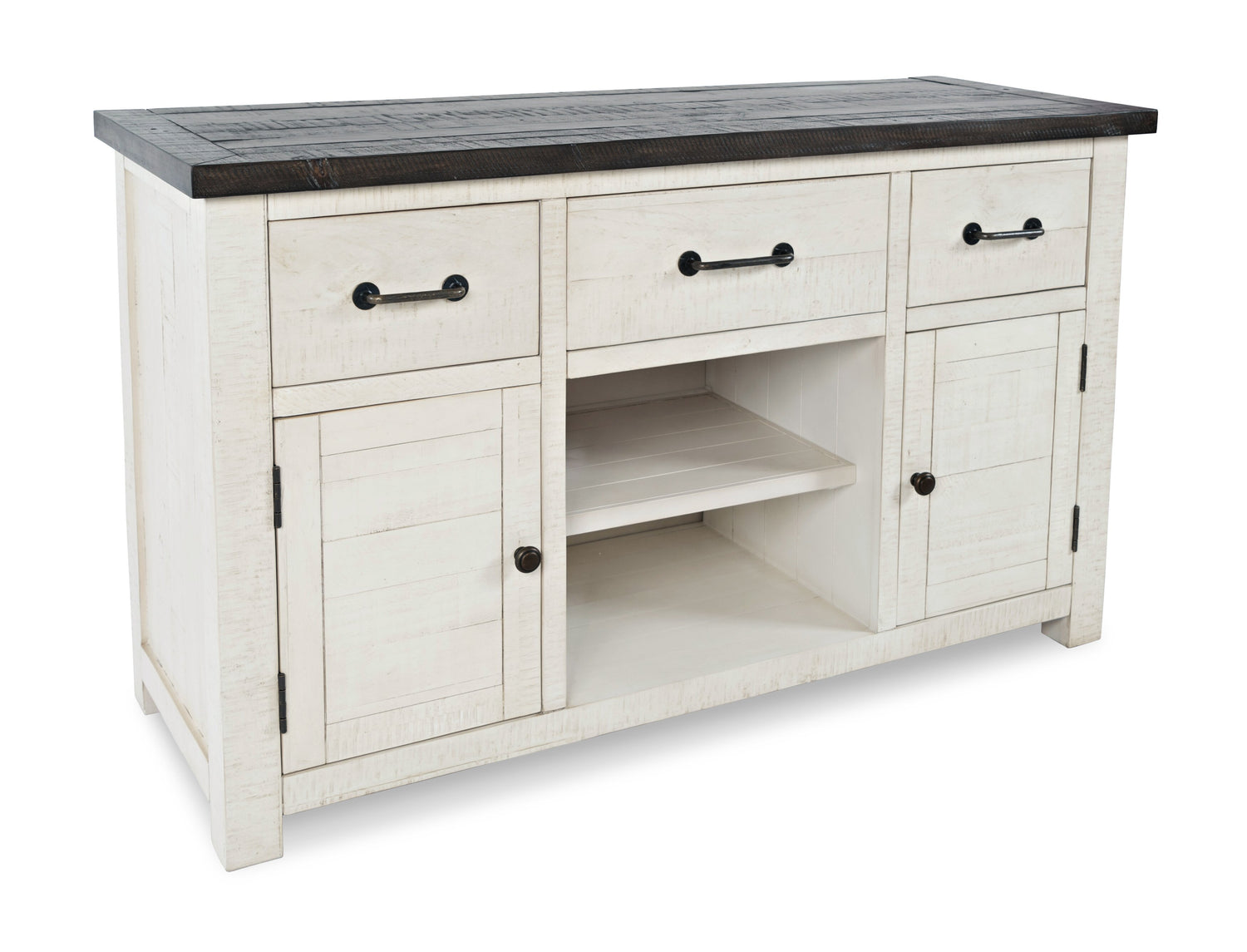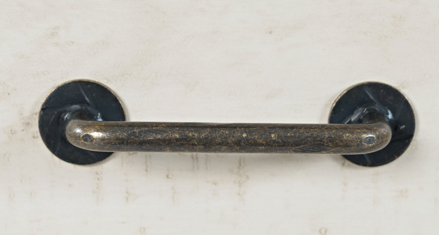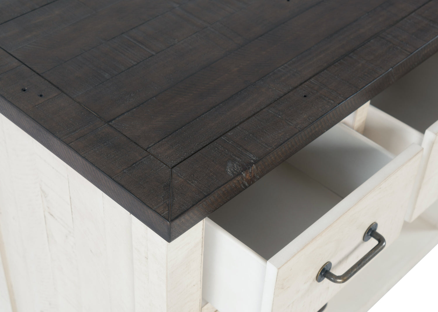 | Détails décoratifs | La quincaillerie en métal vieilli procure une légère touche industrielle à ce meuble audio-vidéo. |