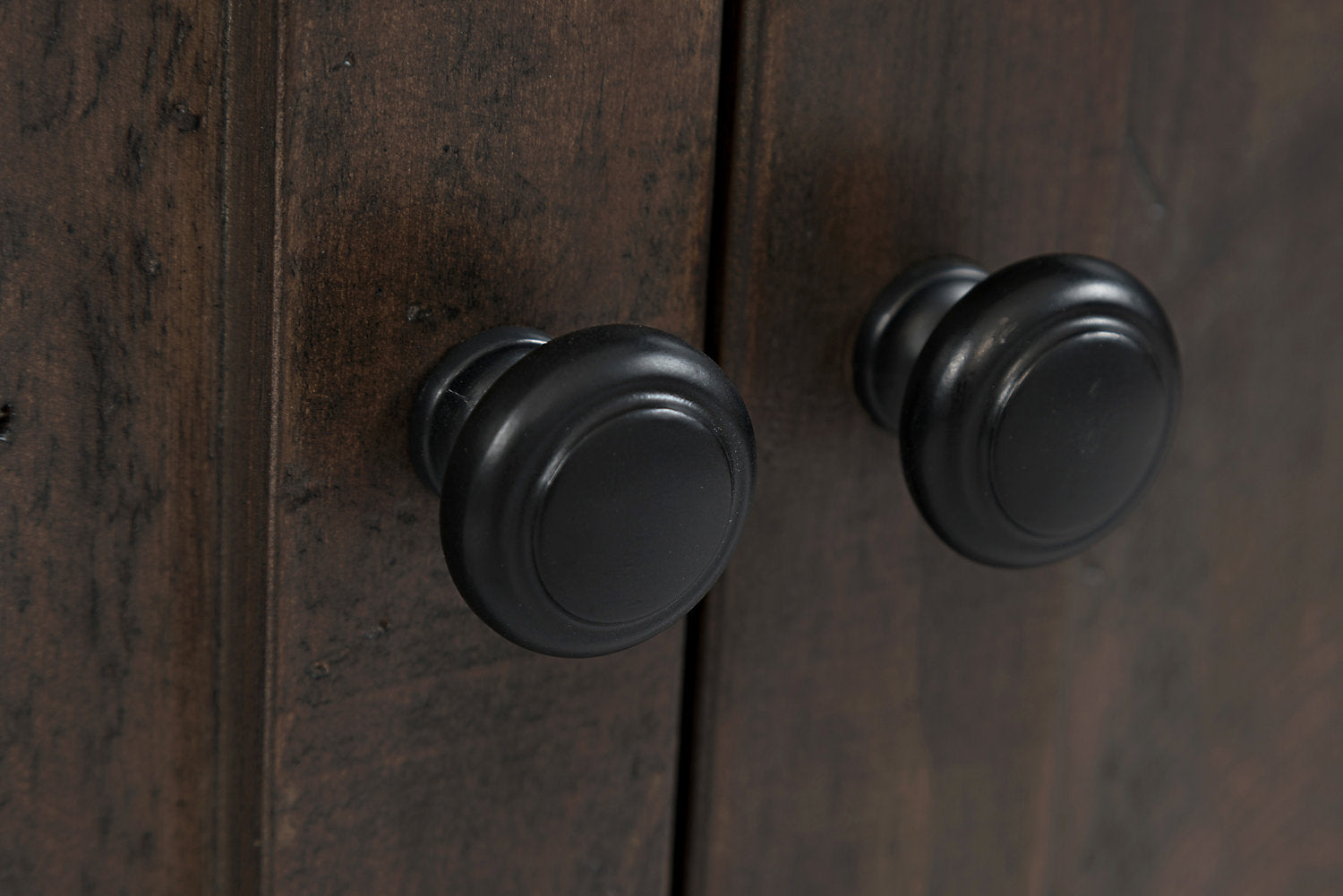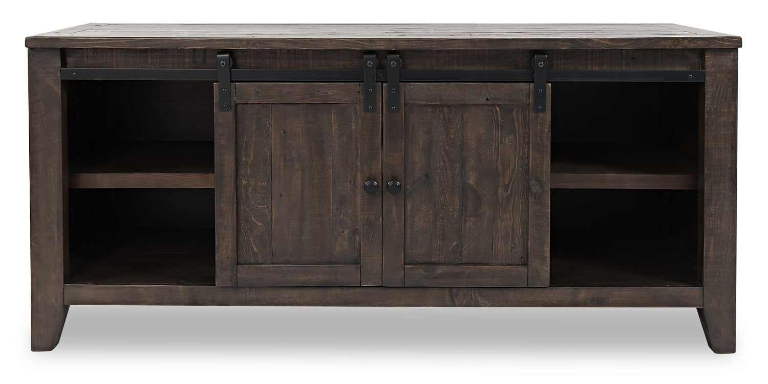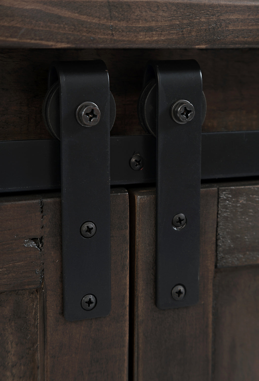 | Détails décoratifs | ce meuble brune possède des portes de style grange qui roulent sur des traverses exposées. |