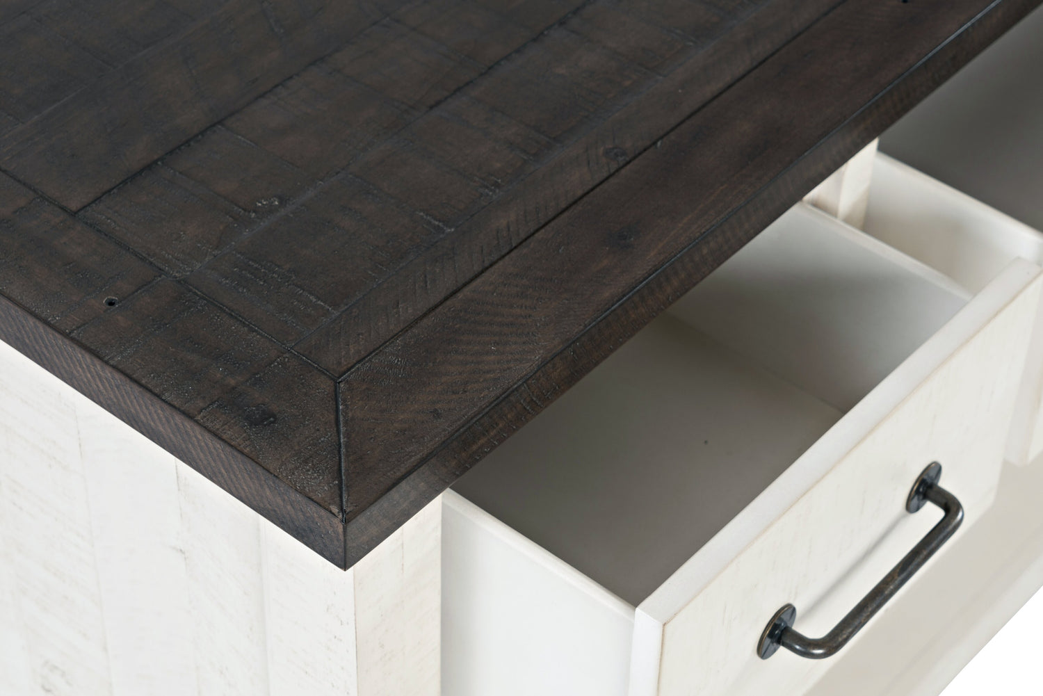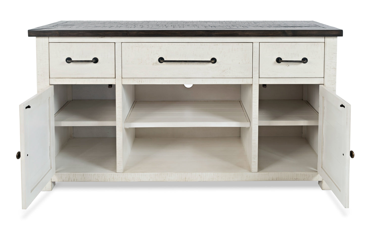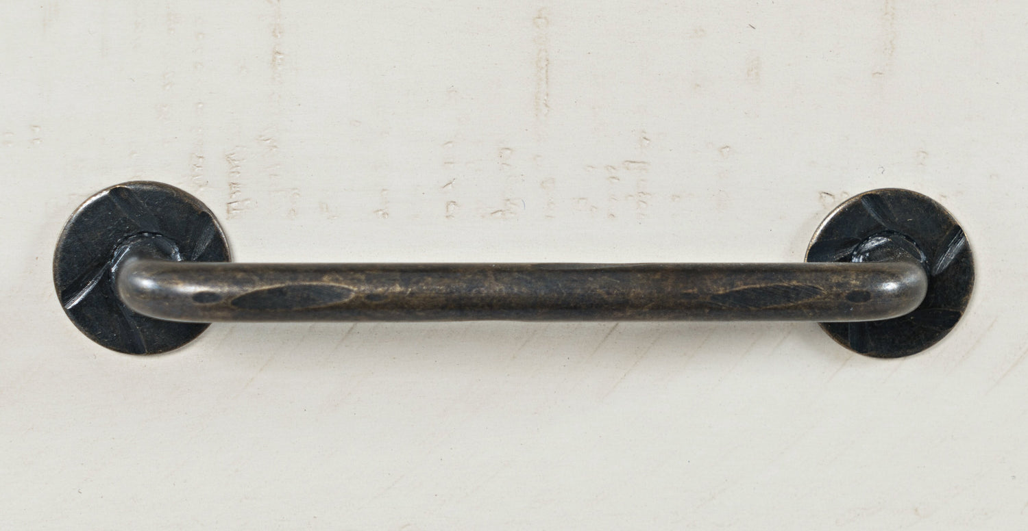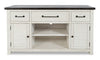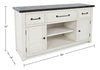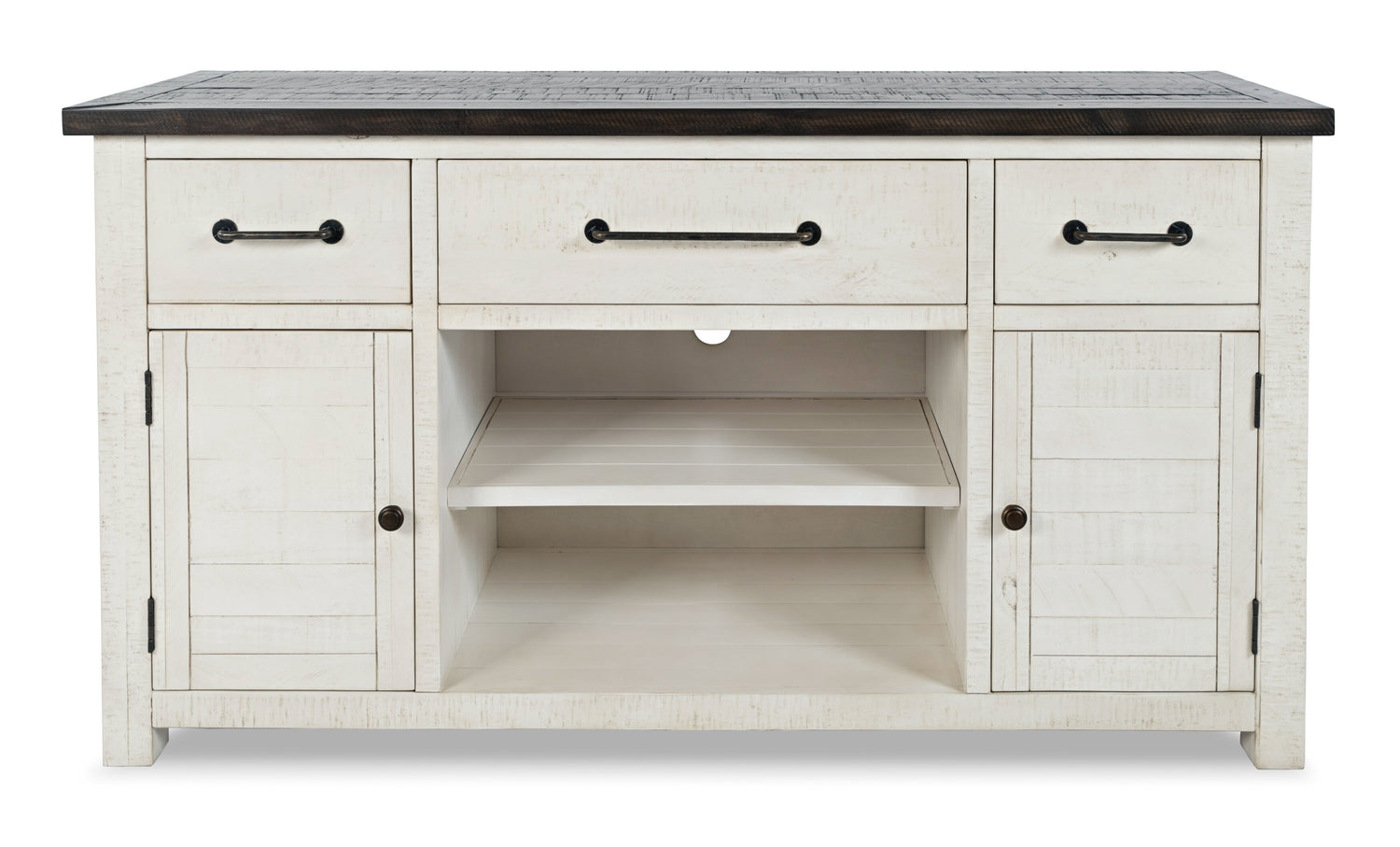 | Détails décoratifs | La quincaillerie en métal vieilli procure une légère touche industrielle à ce meuble audio-vidéo. |