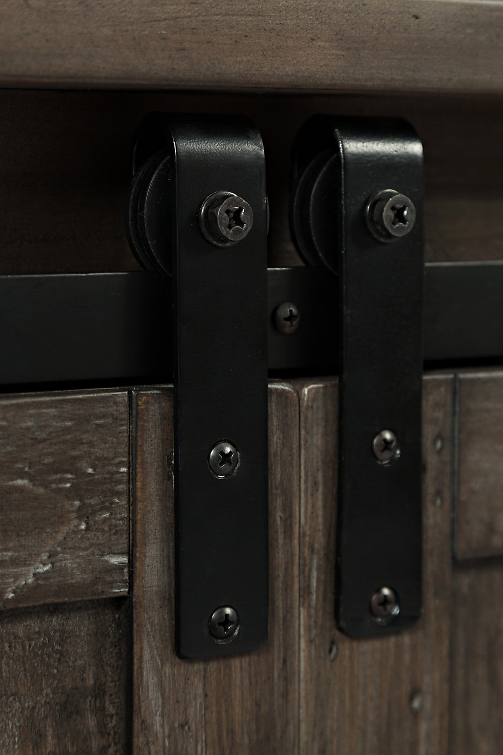 | Détails décoratifs | Le faux devant semble être deux tiroirs plus petits, mais est en réalité un grand tiroir. Les deux poignées et le fini confèrent une apparence équilibrée à cette table. |