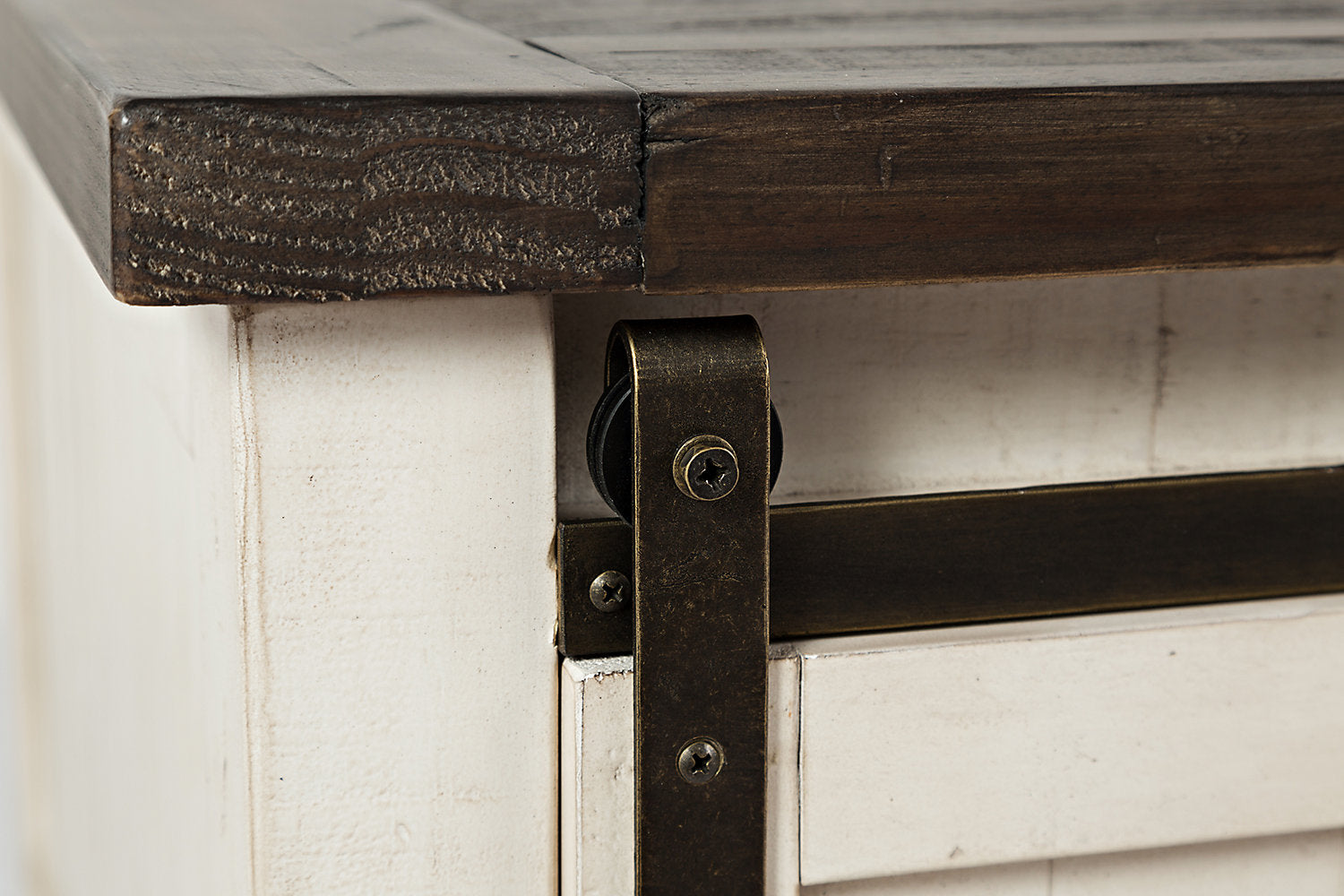 | Détails décoratifs | ce meuble deux couleurs possède des portes de style grange qui roulent sur des traverses exposées. |