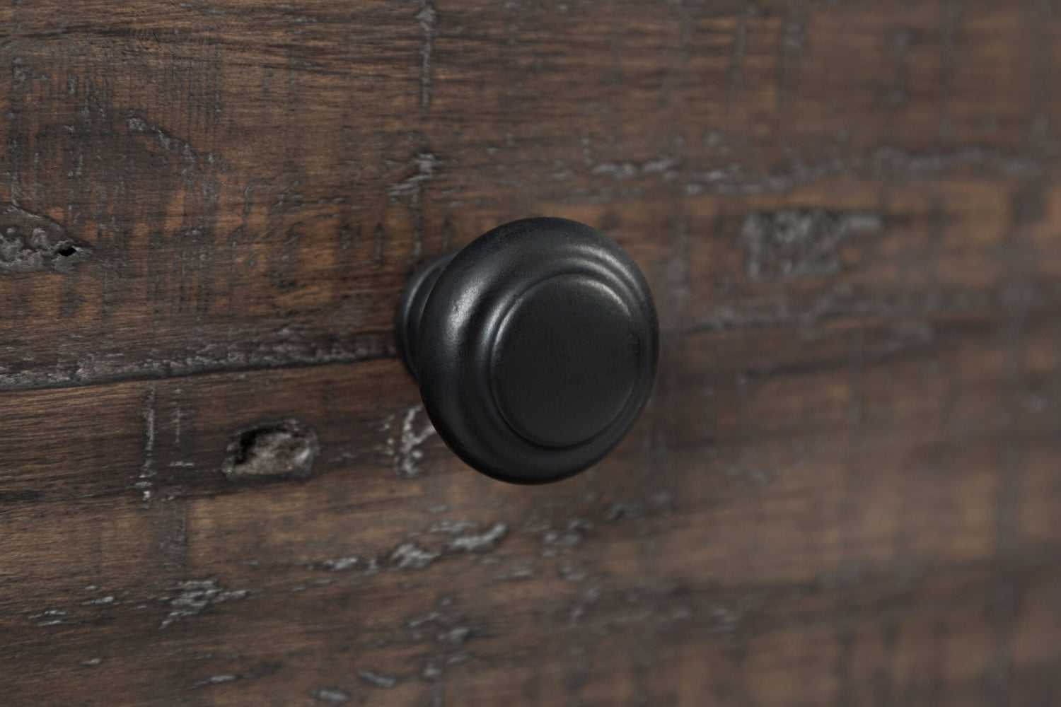 | Détails décoratifs | Des poignées en métal noir procurent une touche industrielle à ce meuble robuste. |