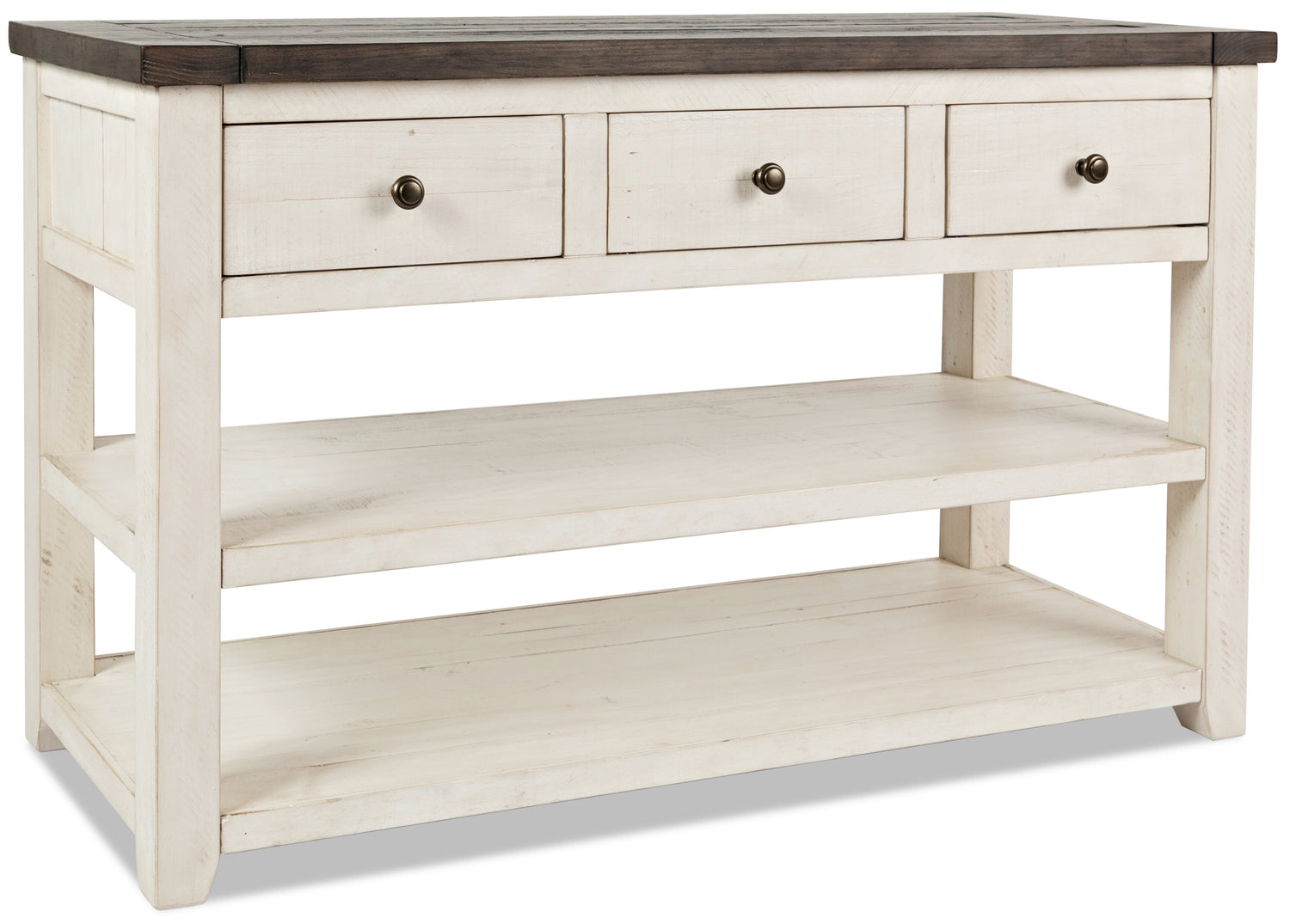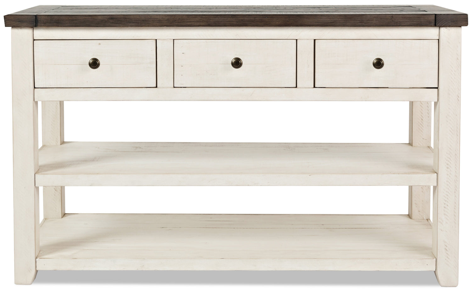 | Détails décoratifs | Des poignées en métal noir procurent une touche industrielle à ce meuble robuste. |