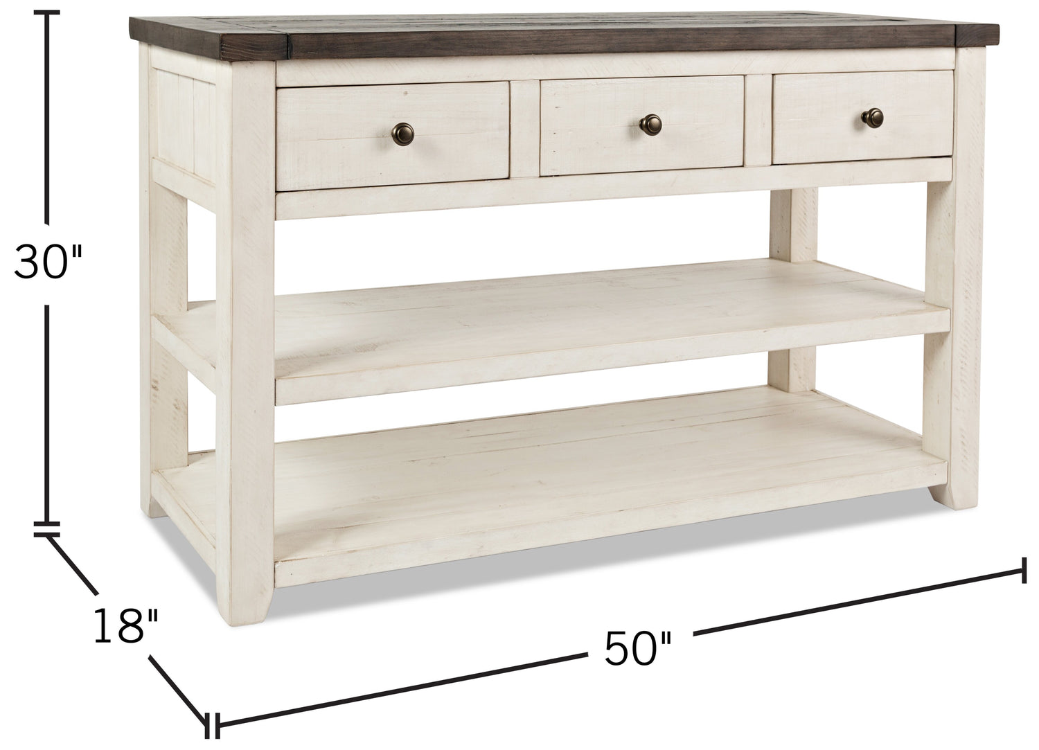 Largeur : 50 po (127,0 cm) Hauteur : 30 po (76,2 cm) Profondeur : 18 po (45,7 cm)
