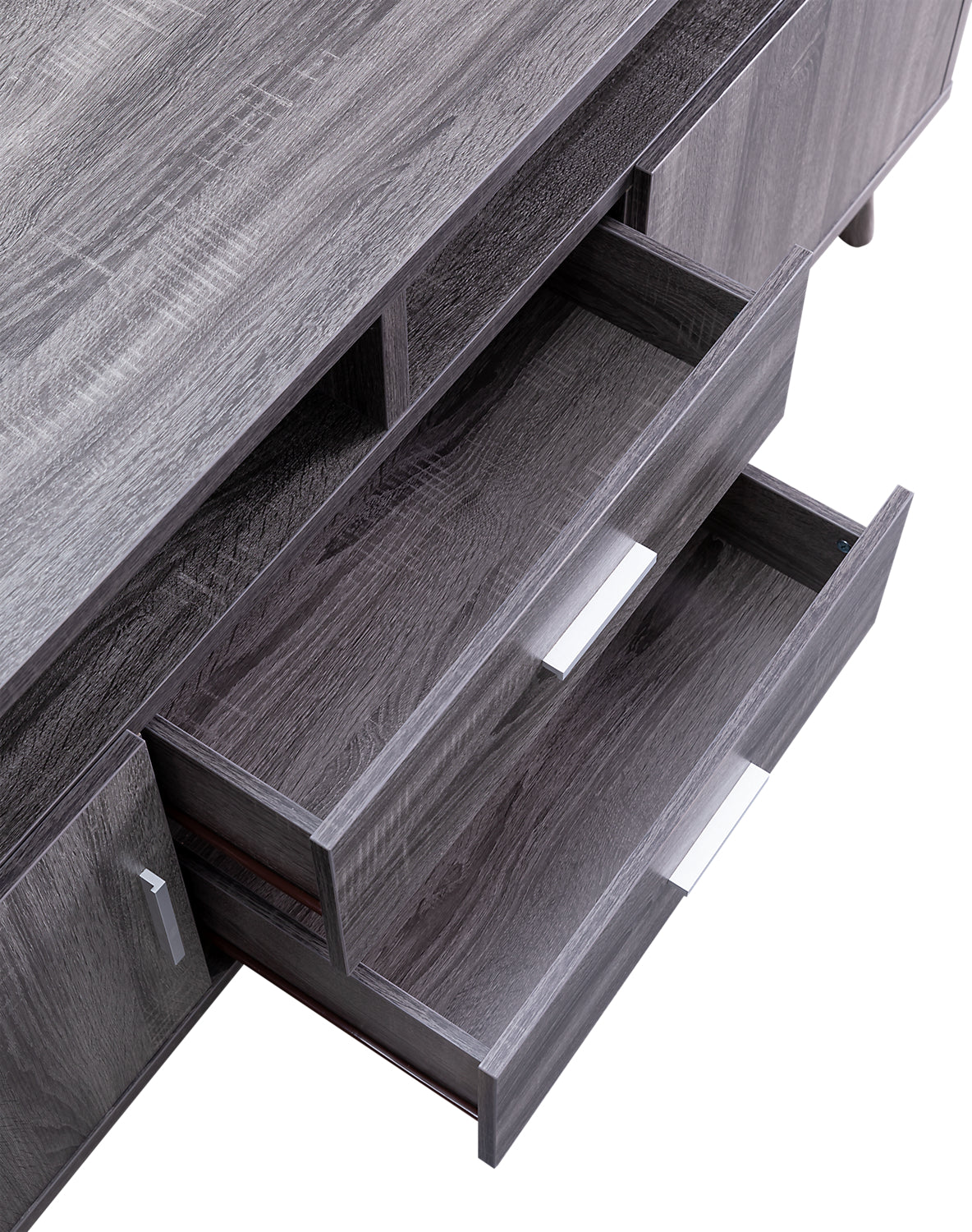 | Détails décoratifs | Les poignées en nickel ajoutent de l'éclat qui complète l'allure épurée de ce meuble. |