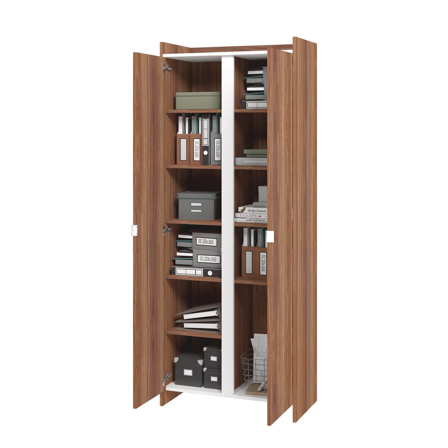 Armoire de rangement Ratzer de Manhattan Comfort de style moderne du milieu du 20e siècle avec 11 tablettes - brune et blanche