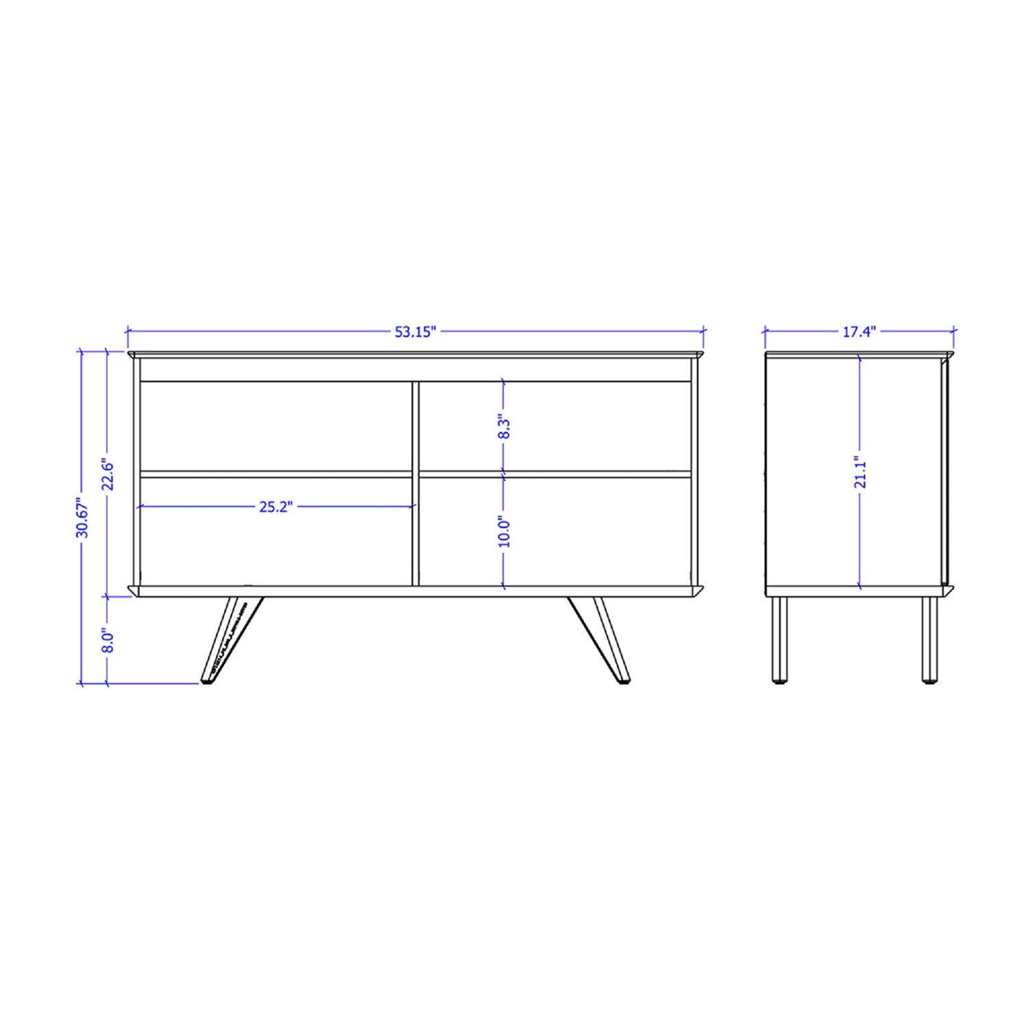 Largeur : 53,15 po (135,0 cm) Hauteur : 30,67 po (77,9 cm) Profondeur : 17,4 po (44,2 cm)