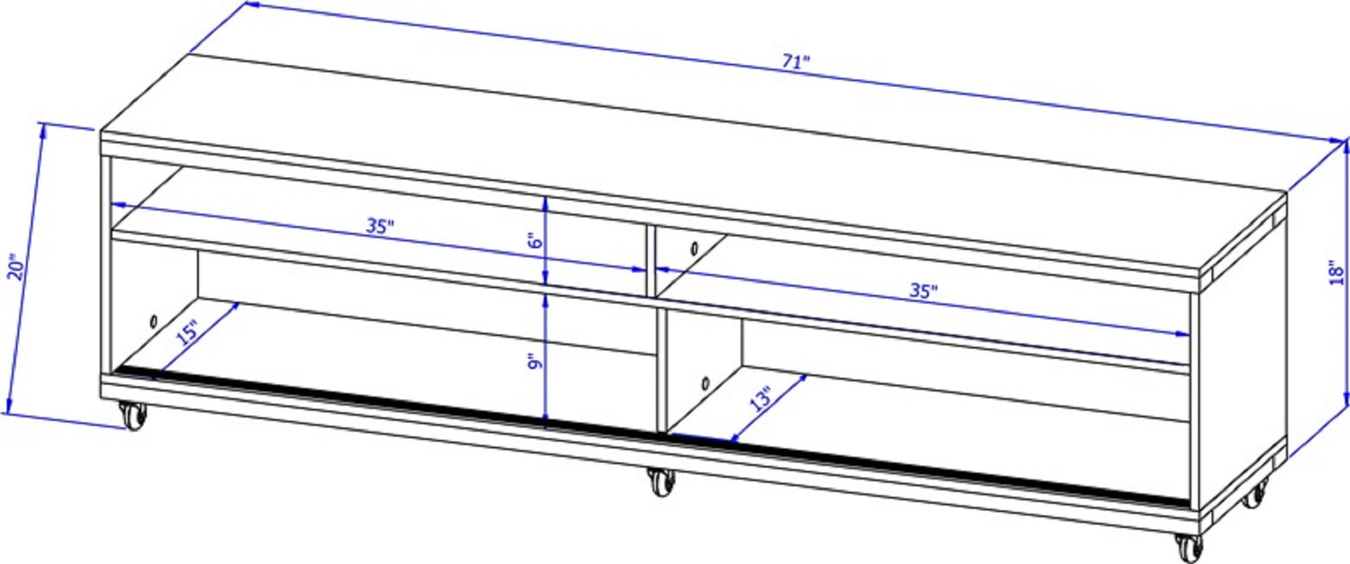 Largeur : 70,47 po (179,0 cm) Hauteur : 24,01 po (61,0 cm) Profondeur : 14,02 po (35,6 cm)