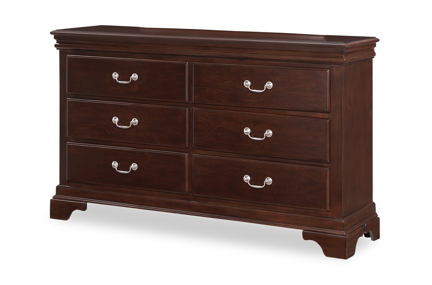 Commode Marco de 58 po (l) x 35 po (H) à 6 tiroirs pour la chambre à coucher - brun cerisier